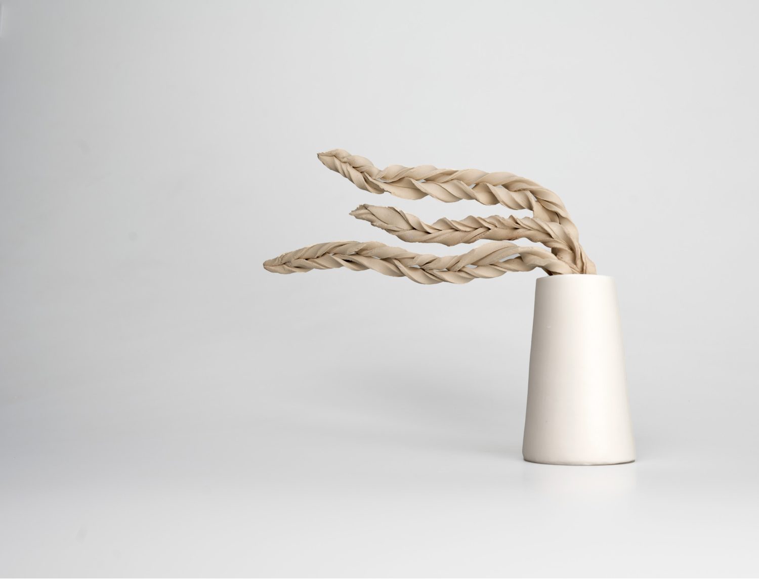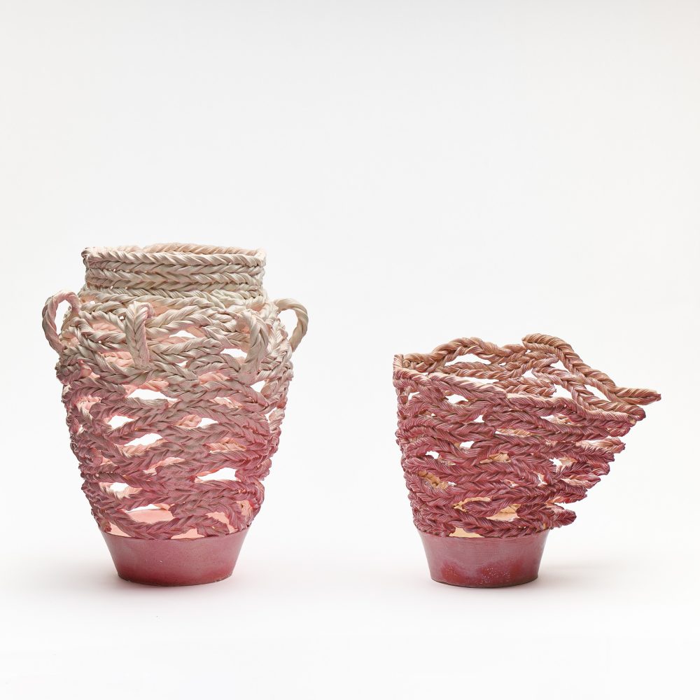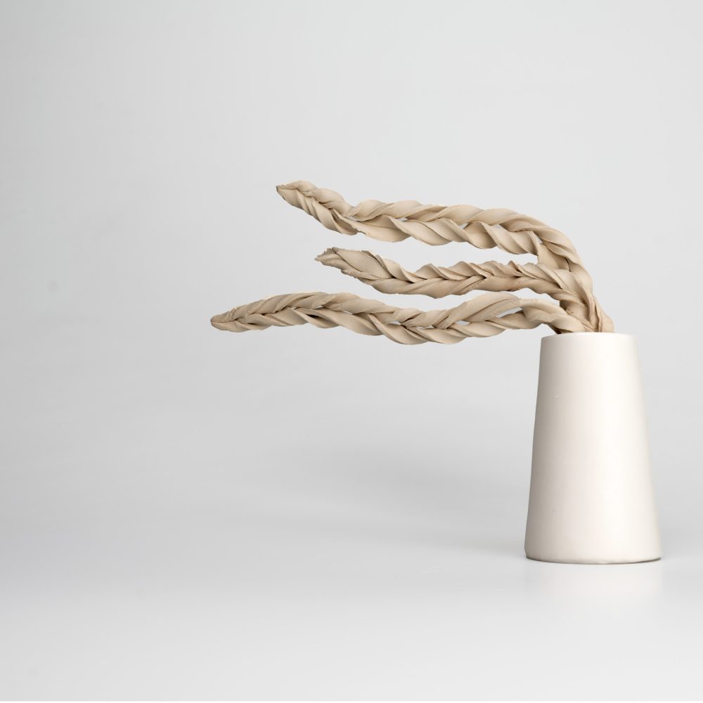 Bahareh Khomeiry’s ceramic practice unites architecture and emotion, transforming structure into lived experience. Starting with construction – layering and assembling – her forms evolve into sculptures that suggest wind, movement, and shifting human states.