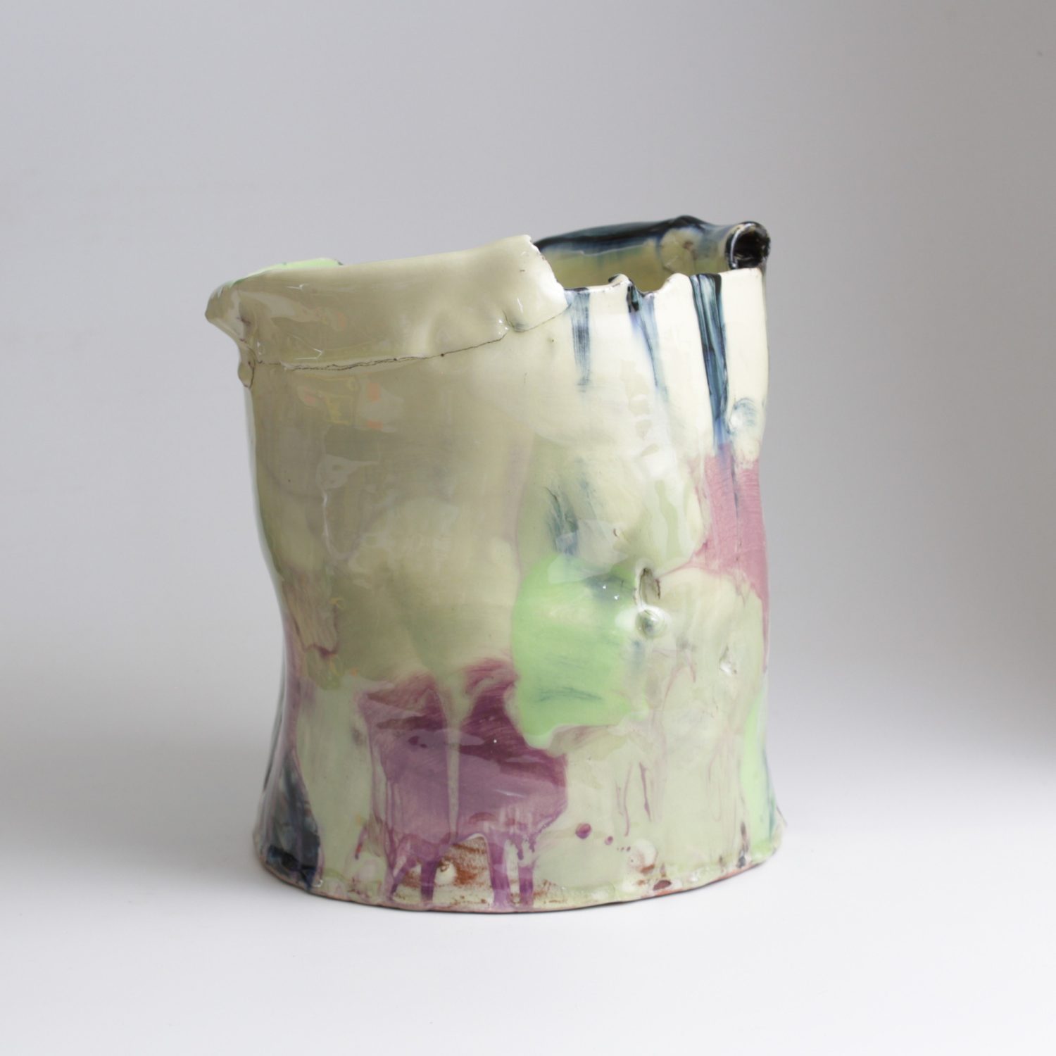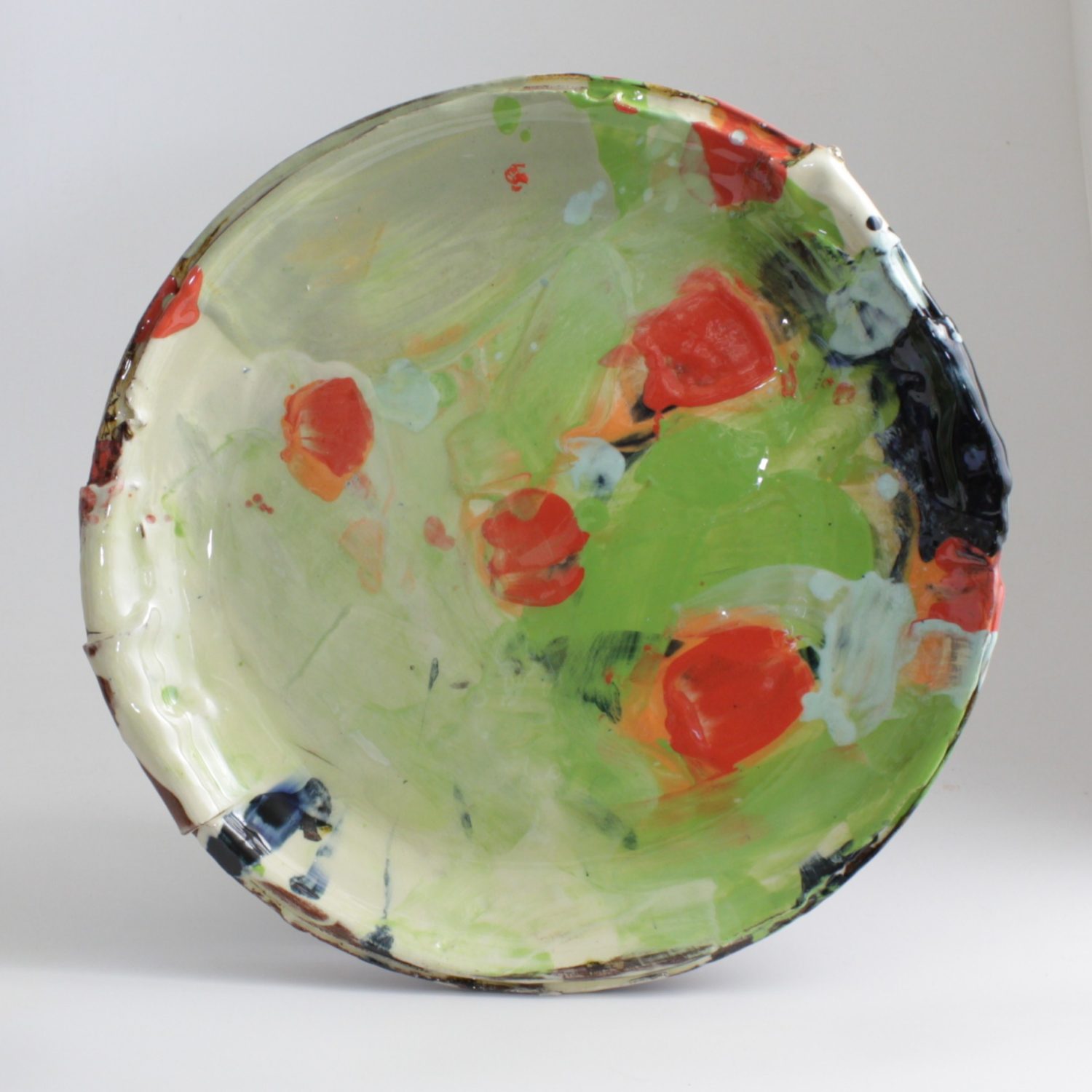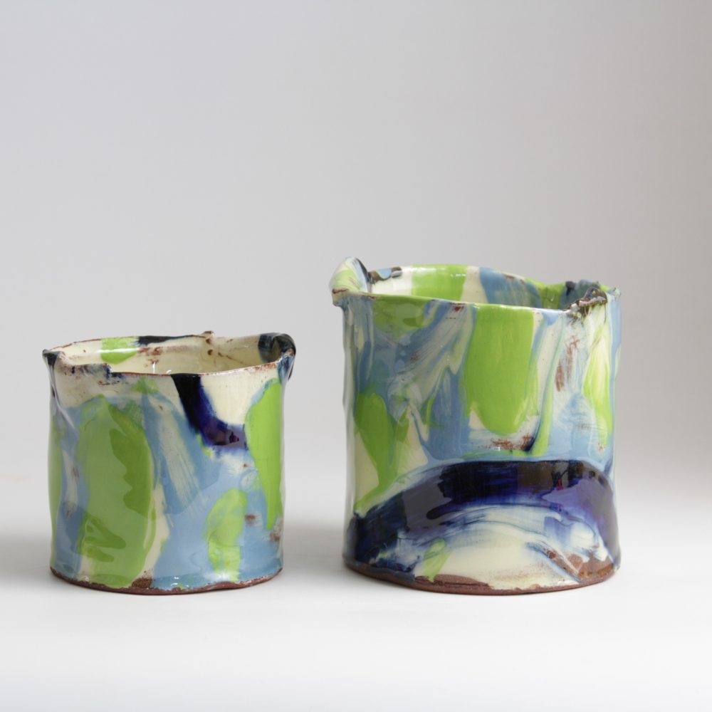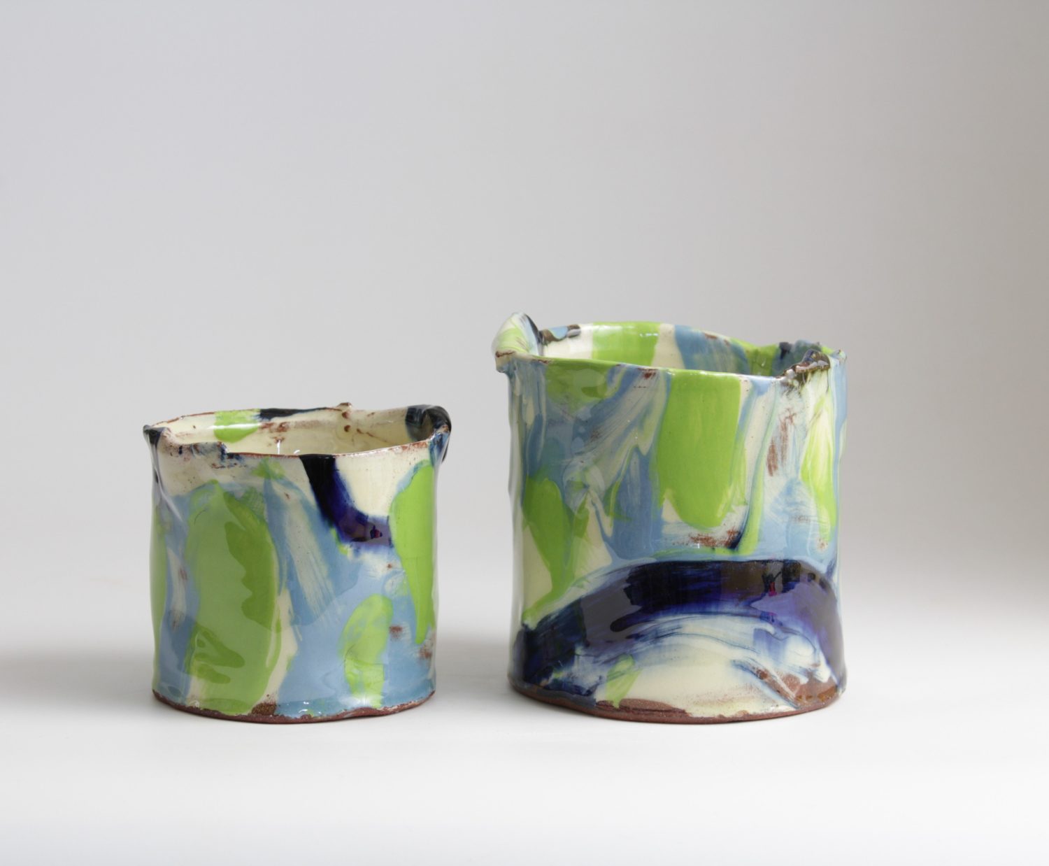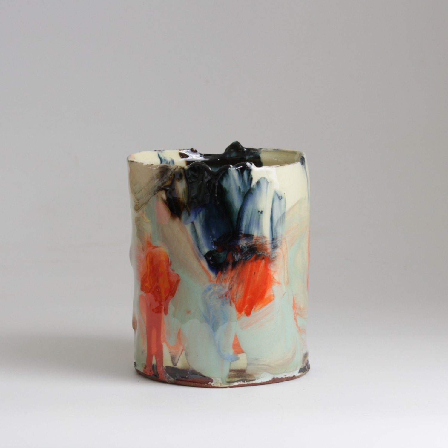 Barry makes work that is inspired by colour and painting. Using earthenware clay, the vessels he makes are wheel thrown and altered or constructed from slabs. These are then transformed with soft brushes, vibrant coloured slips, stains and oxides, before a being glazed with a rich, bright, soft transparent glaze.