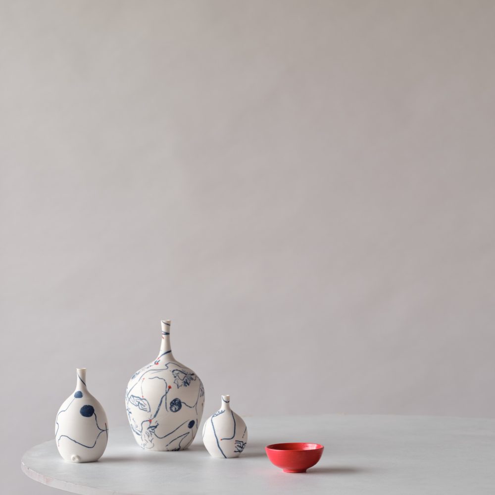 Carolyn creates “families” of pots, pieces differing in shape and size, scale, curve and decoration, but united in spirit. Oriental-inspired ceramics with a contemporary twist.