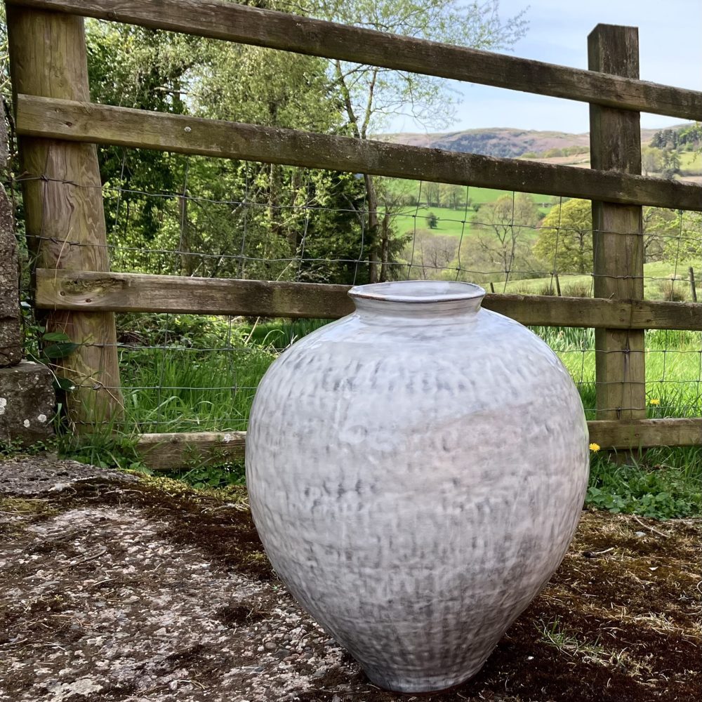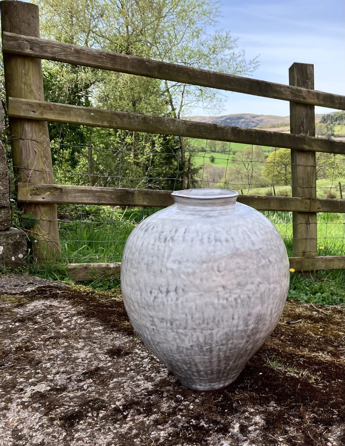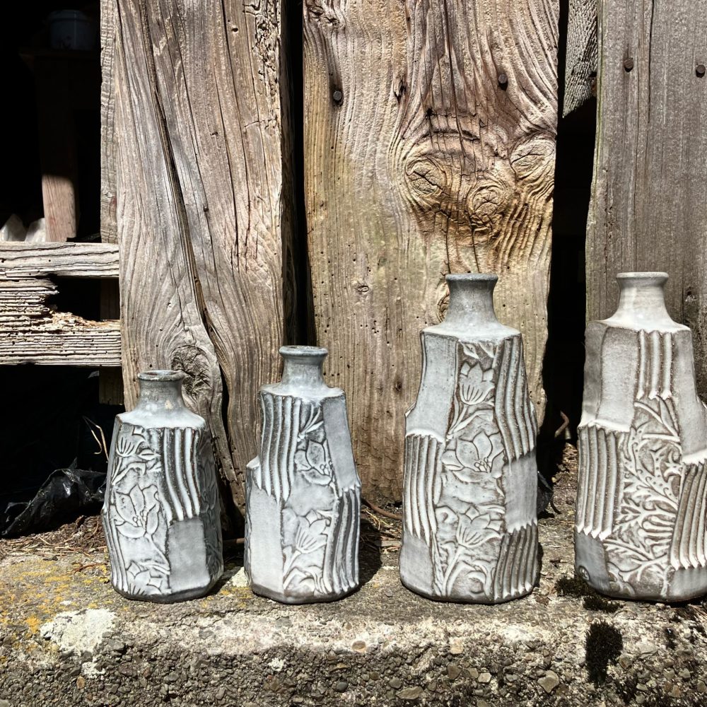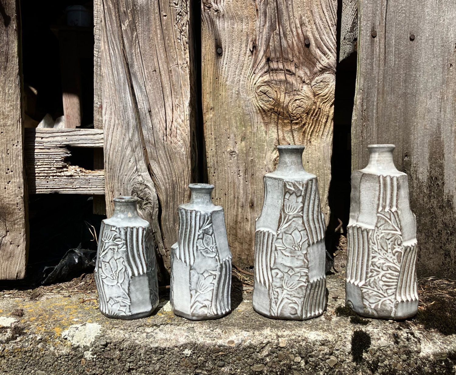 Currently focusing her making predominantly on functional ware, Hajeong Lee Rogers fuses traditional Korean Buncheong techniques, using inlaid white slip and a dark clay, with patterns influenced by William Morris. Hajeong is trying to find harmony between Korean tradition and the West. She also loves the idea of her pots being used everyday unlike a sculpture she made in the past, which is entirely decorative or made to convey a message. She feels that by using her pots they became a familiar and comforting feature of a person’s life.
