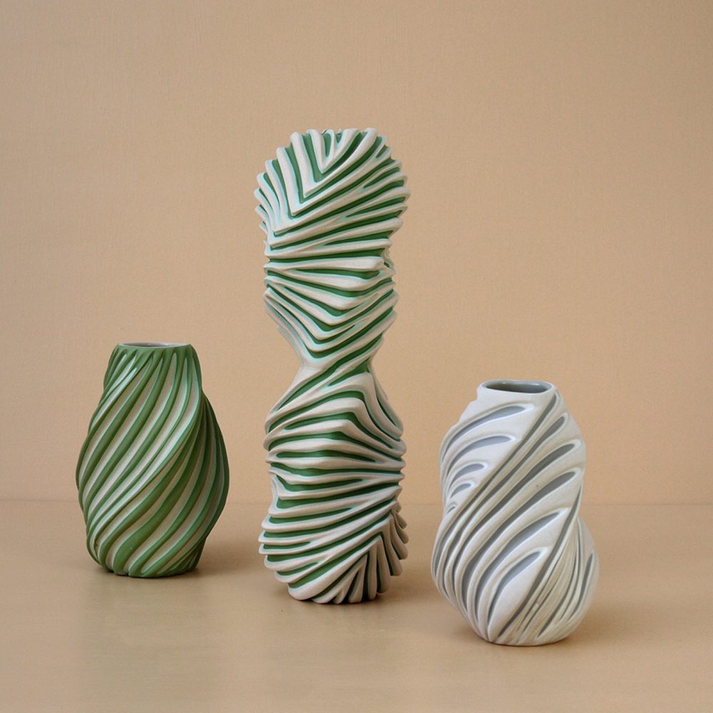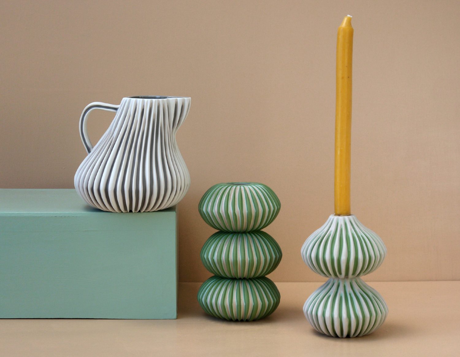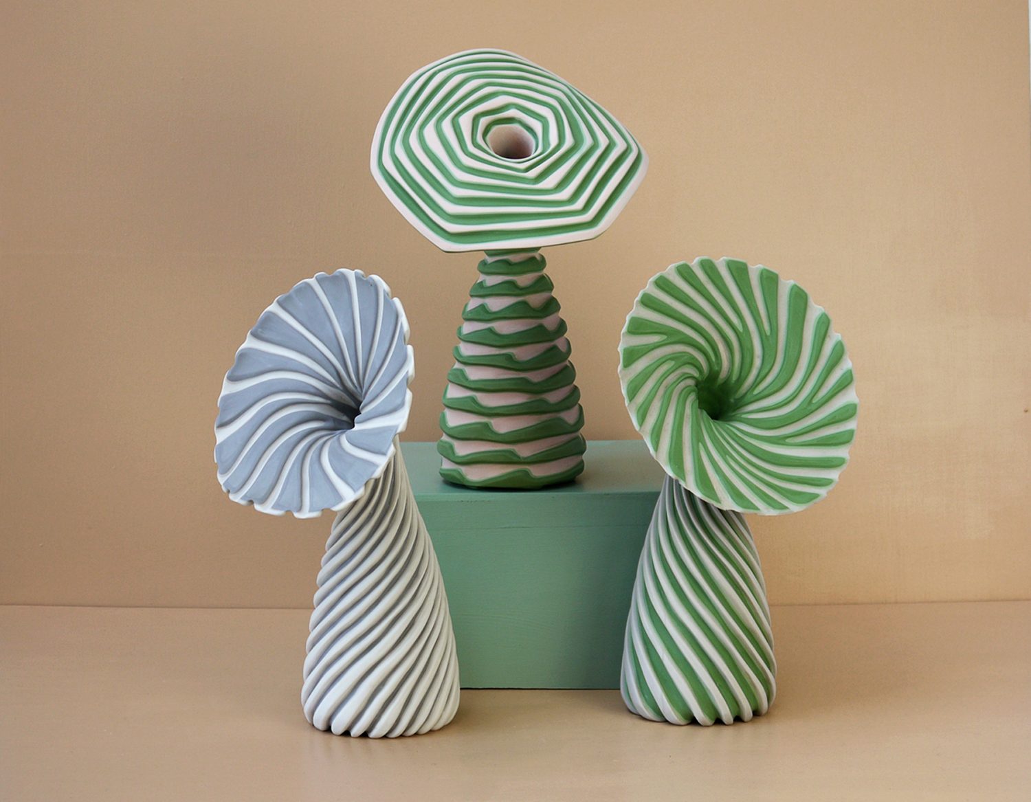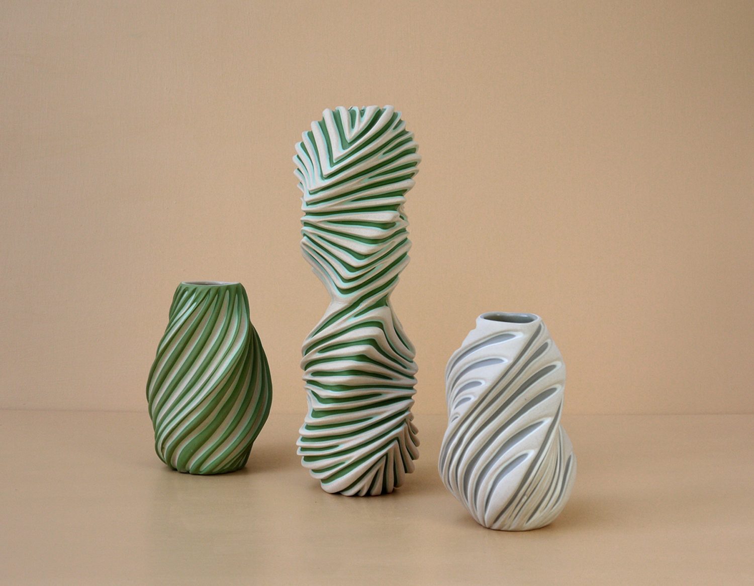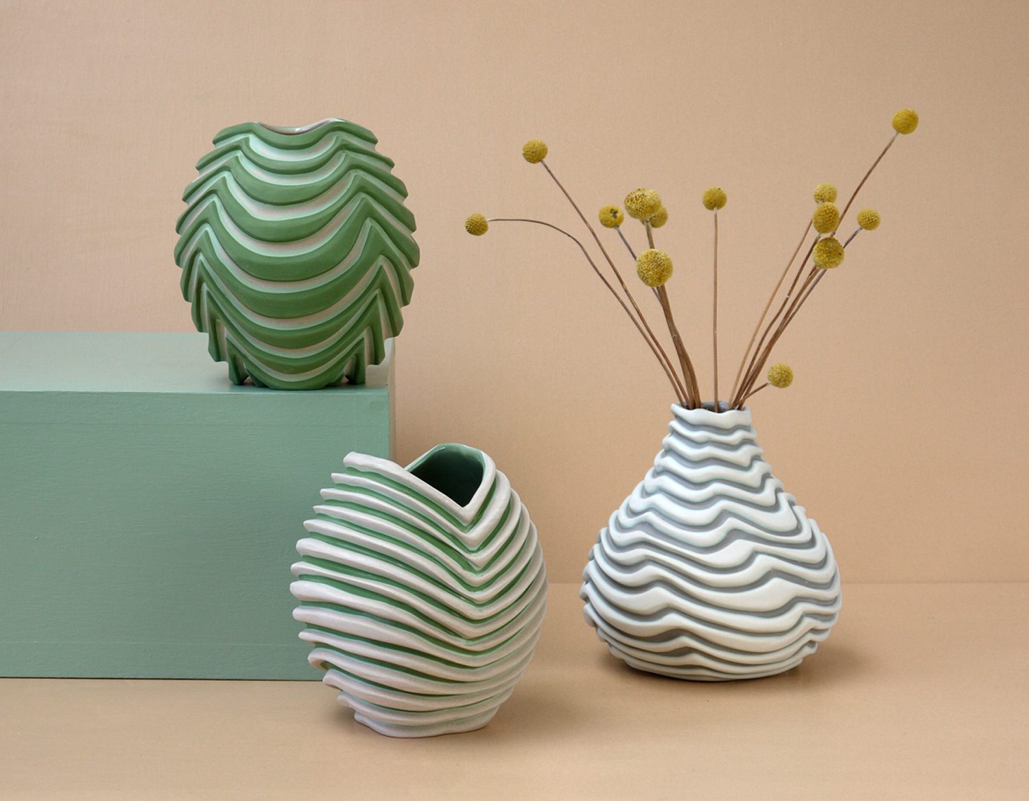 Harriet wishes to evoke feeling, movement and intrigue in her work. She layers pigmented porcelain into simple plaster moulds and carves the work to create tension and harmony, revealing the layers and patterns held within.