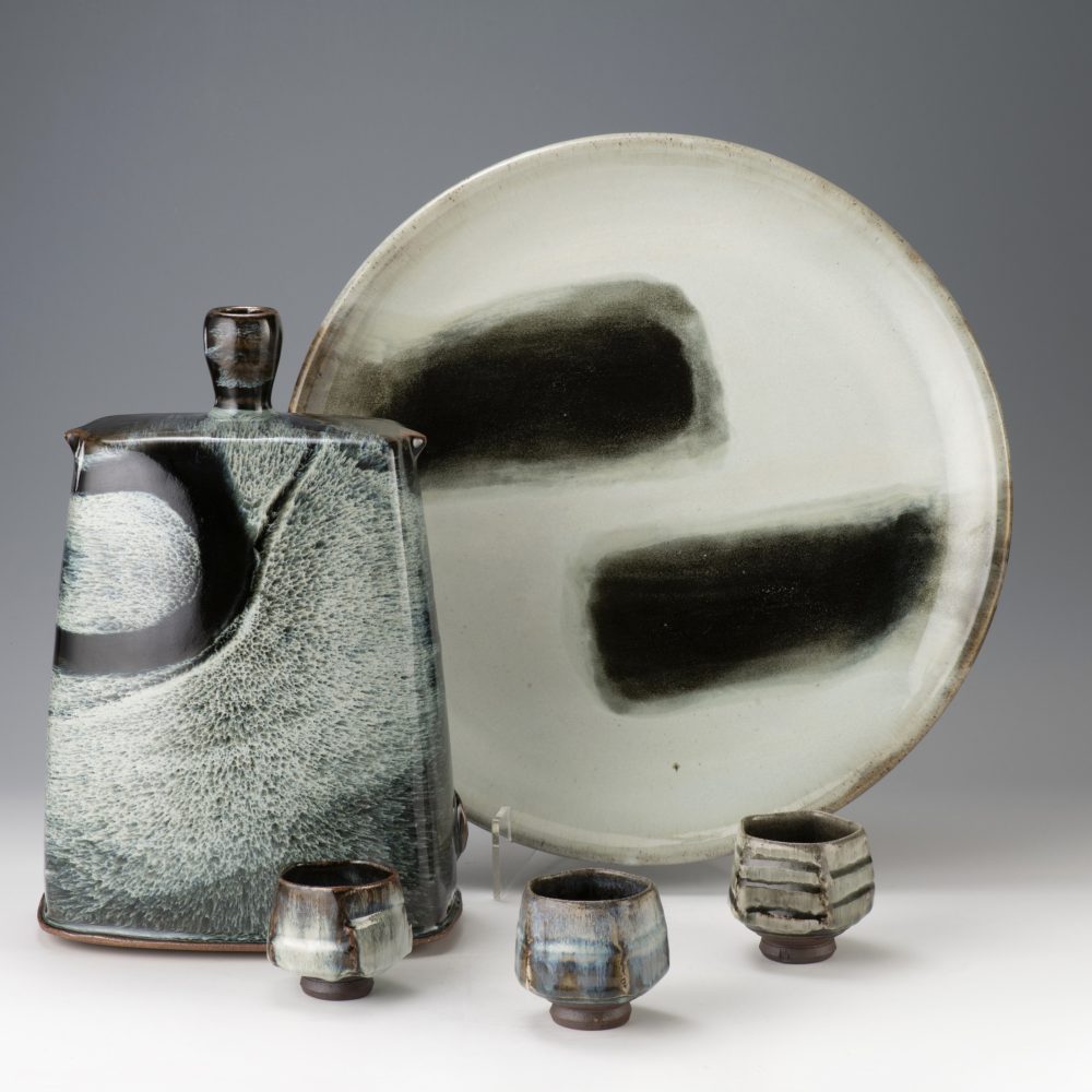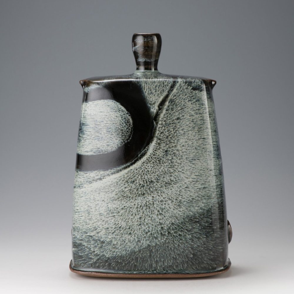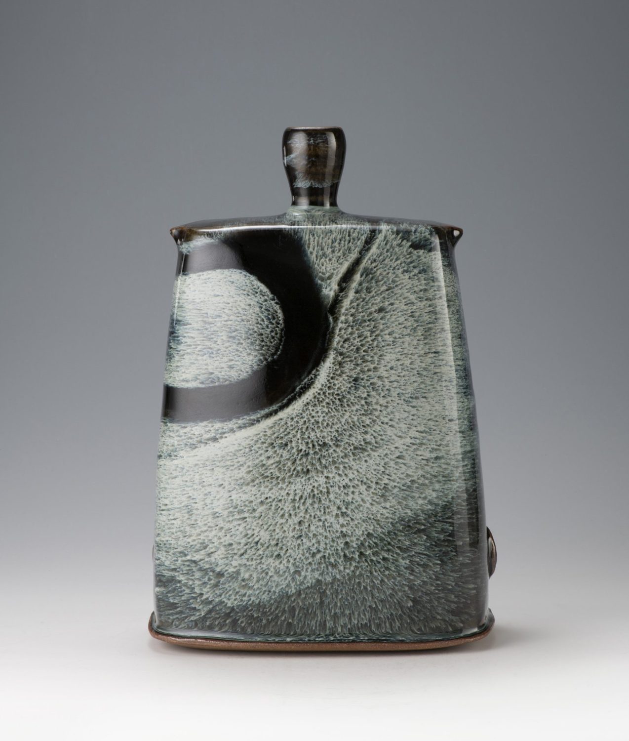 James Hake’s work ranges from huge platters and bottles to delicate bowls and tiny lidded jars. Working at the wheel he produces work in a series of similar forms each with their own subtle variations. Many of his glazes are made using local materials, gathered from quarries and clay seams in the countryside around his studio. Glazes are applied spontaneously by dipping, pouring and brushing in different combinations. During the firing the glazes fuse together producing fluid dynamic surfaces.