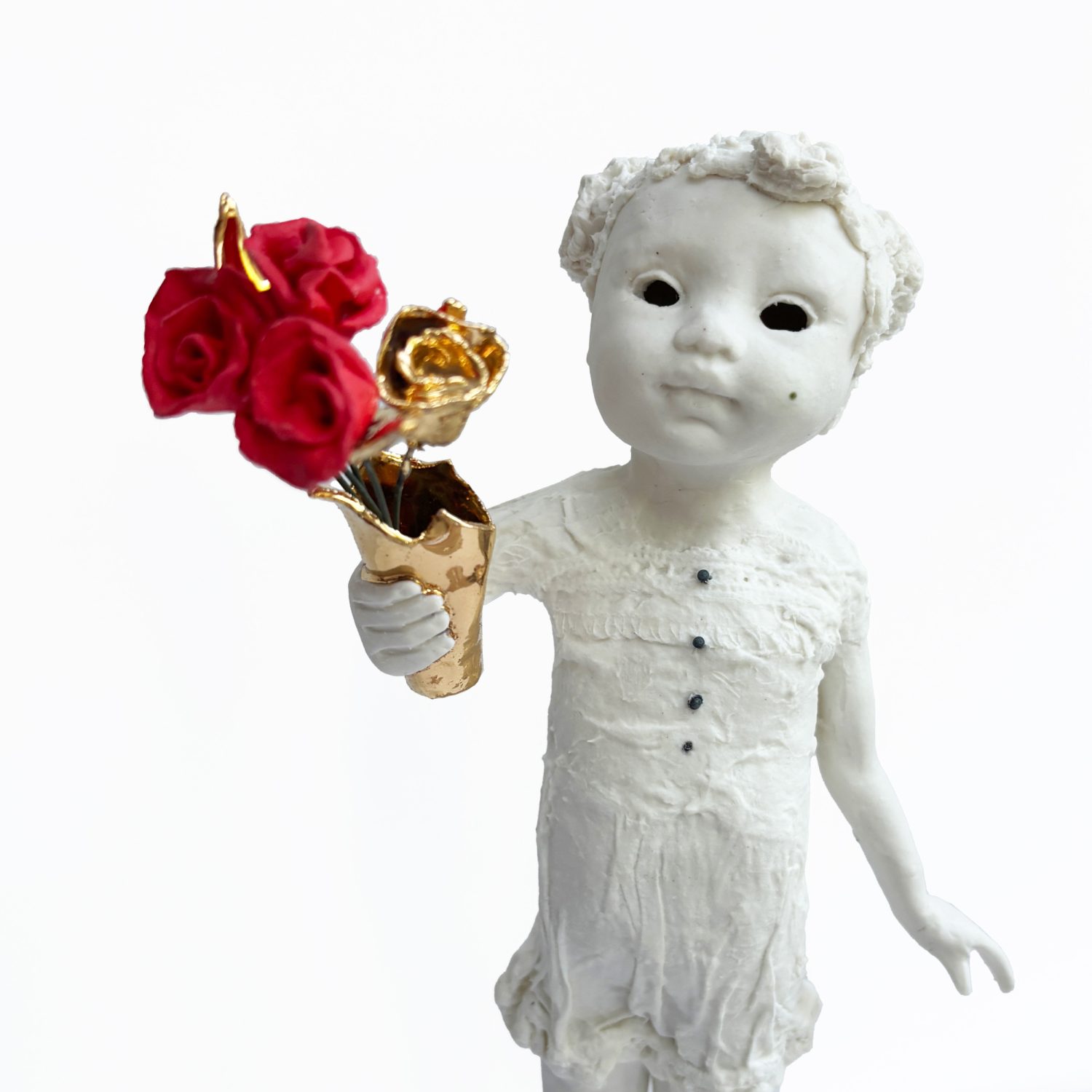 Jemma Gowland’s work uses the medium of ceramics – and particularly porcelain – to explore the constraints imposed by upbringing, expectation, and the need to fit with society. Contemporary issues from the influence of social media on young people, to behaviour and and attitude, are subtly presented.