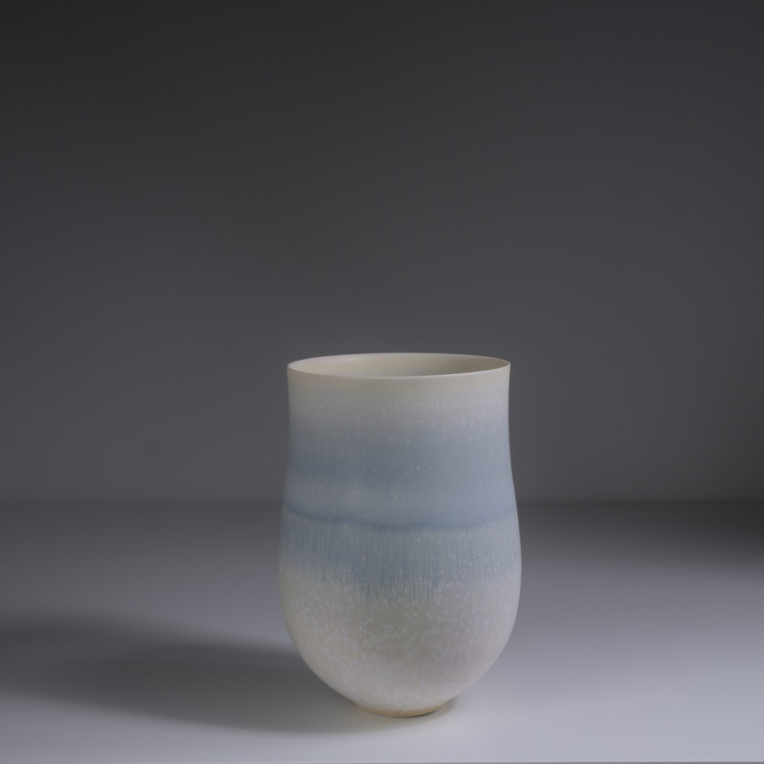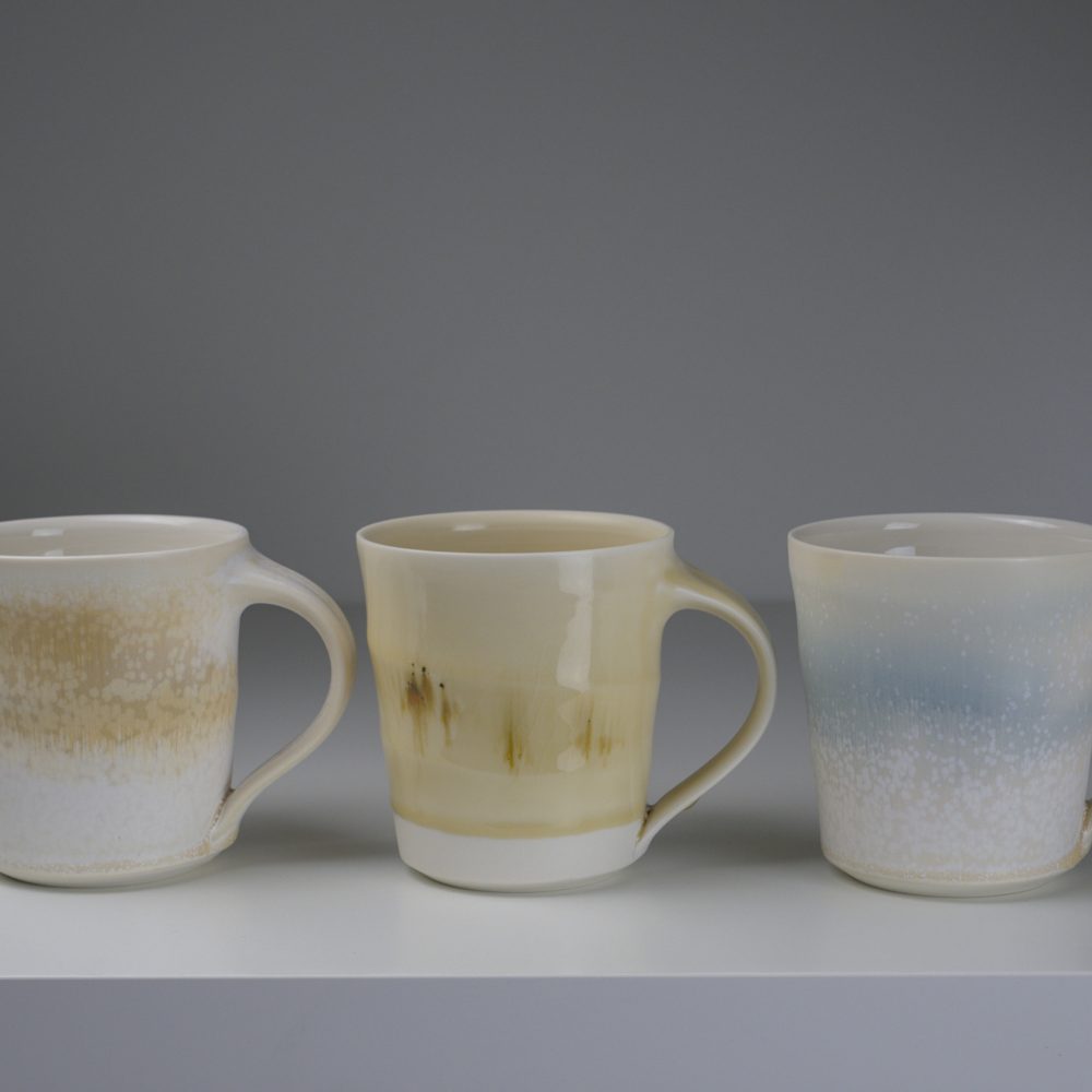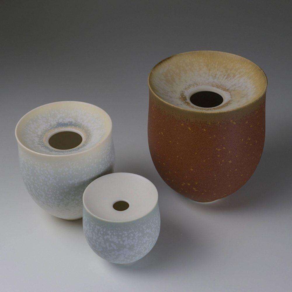 Inspiration is often drawn from the rugged Irish coastline, its colours and weathered textures softened and loosely translated into tactile surfaces and gradients of colour. Silky microcrystalline glazes are layered in different ways and sometimes fired multiple times to create movement, subtle patterns and depth of surface.