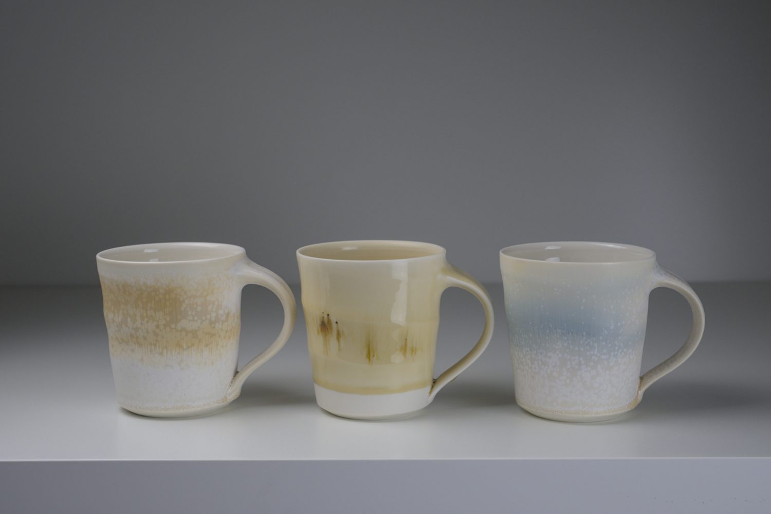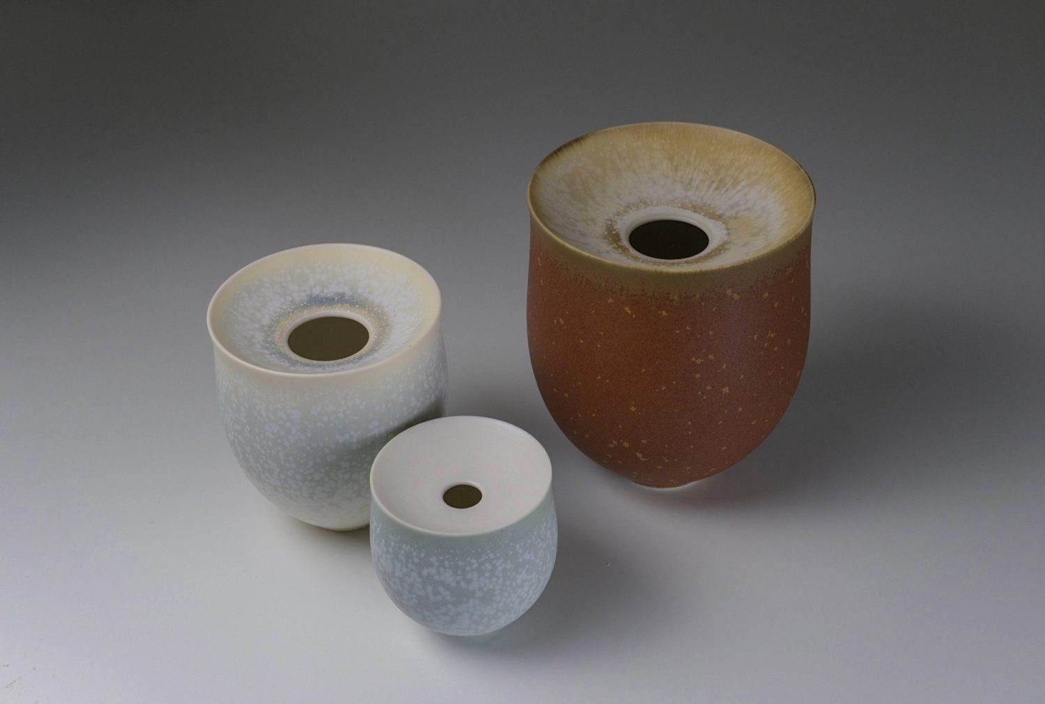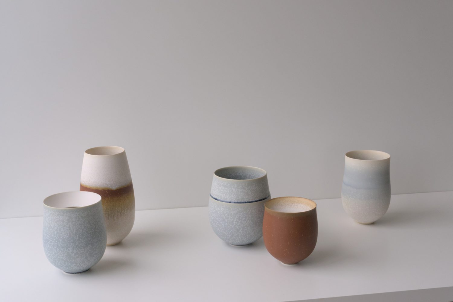 Inspiration is often drawn from the rugged Irish coastline, its colours and weathered textures softened and loosely translated into tactile surfaces and gradients of colour. Silky microcrystalline glazes are layered in different ways and sometimes fired multiple times to create movement, subtle patterns and depth of surface.