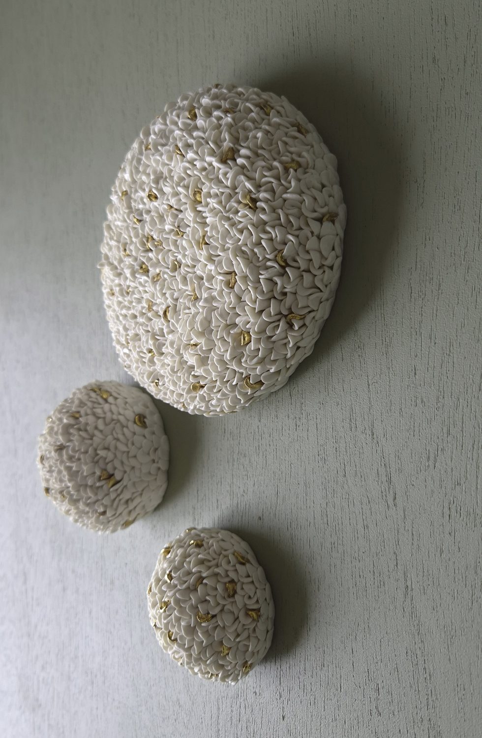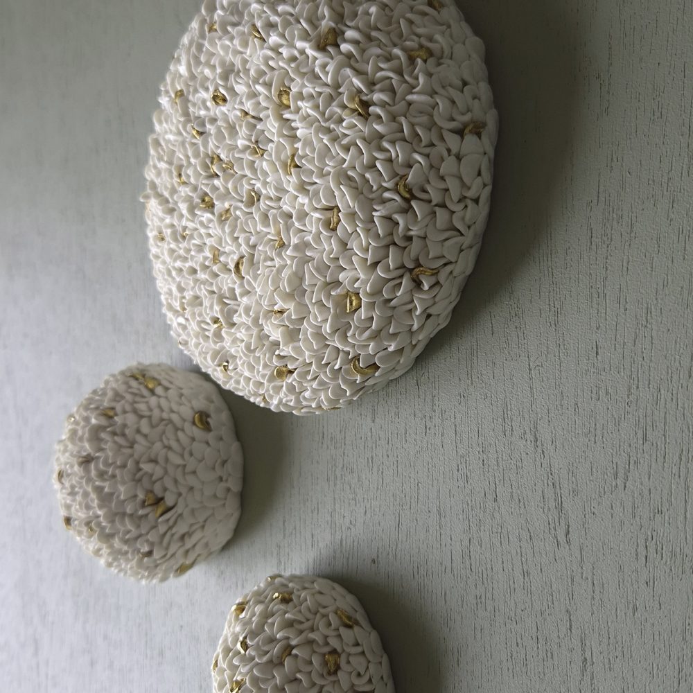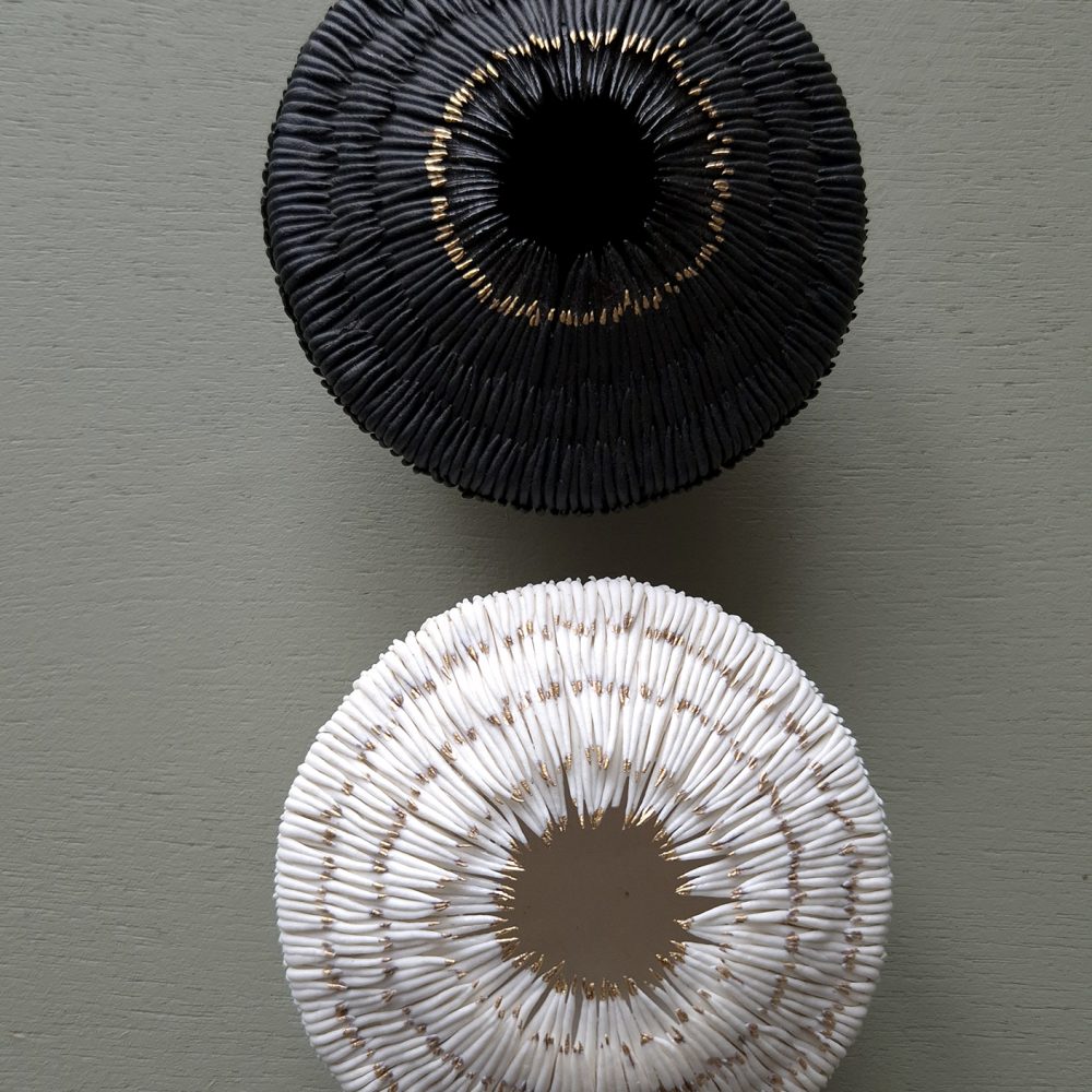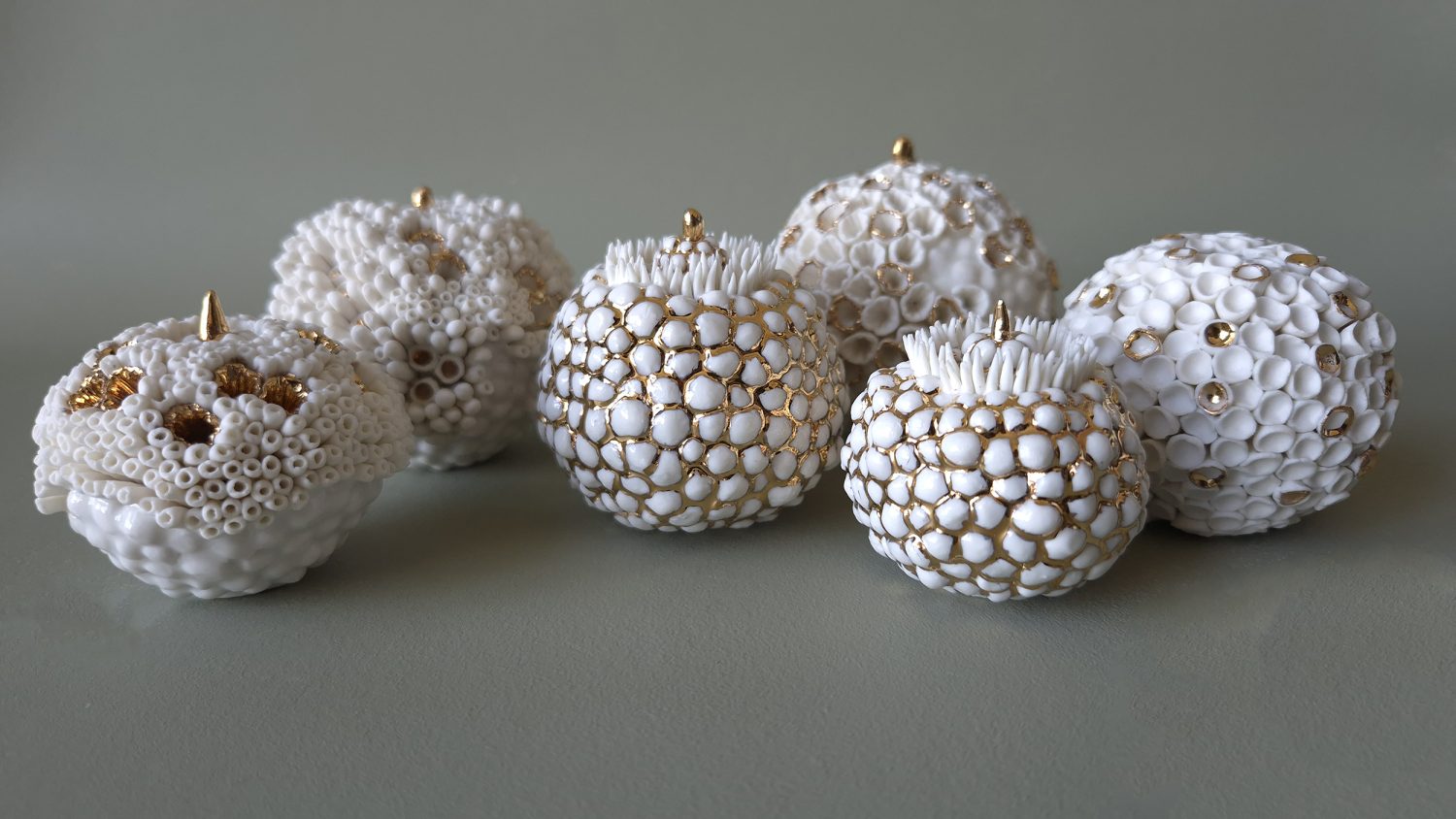 Lisa Biris creates sculptural objects out of porcelain and stoneware which are inspired by the beauty and diversity of nature. All objects are based on three principles: texture, contrast and movement. Her process of creation is organic and seldom pre-planned, this instills the pieces with a natural organic feeling as if a piece might have naturally grown into the end result instead of being manmade. Each object takes many hours to create, every little element of texture is made and added individually. The glaze, oxides and lusters are also applied separately with a (small) brush on the object.