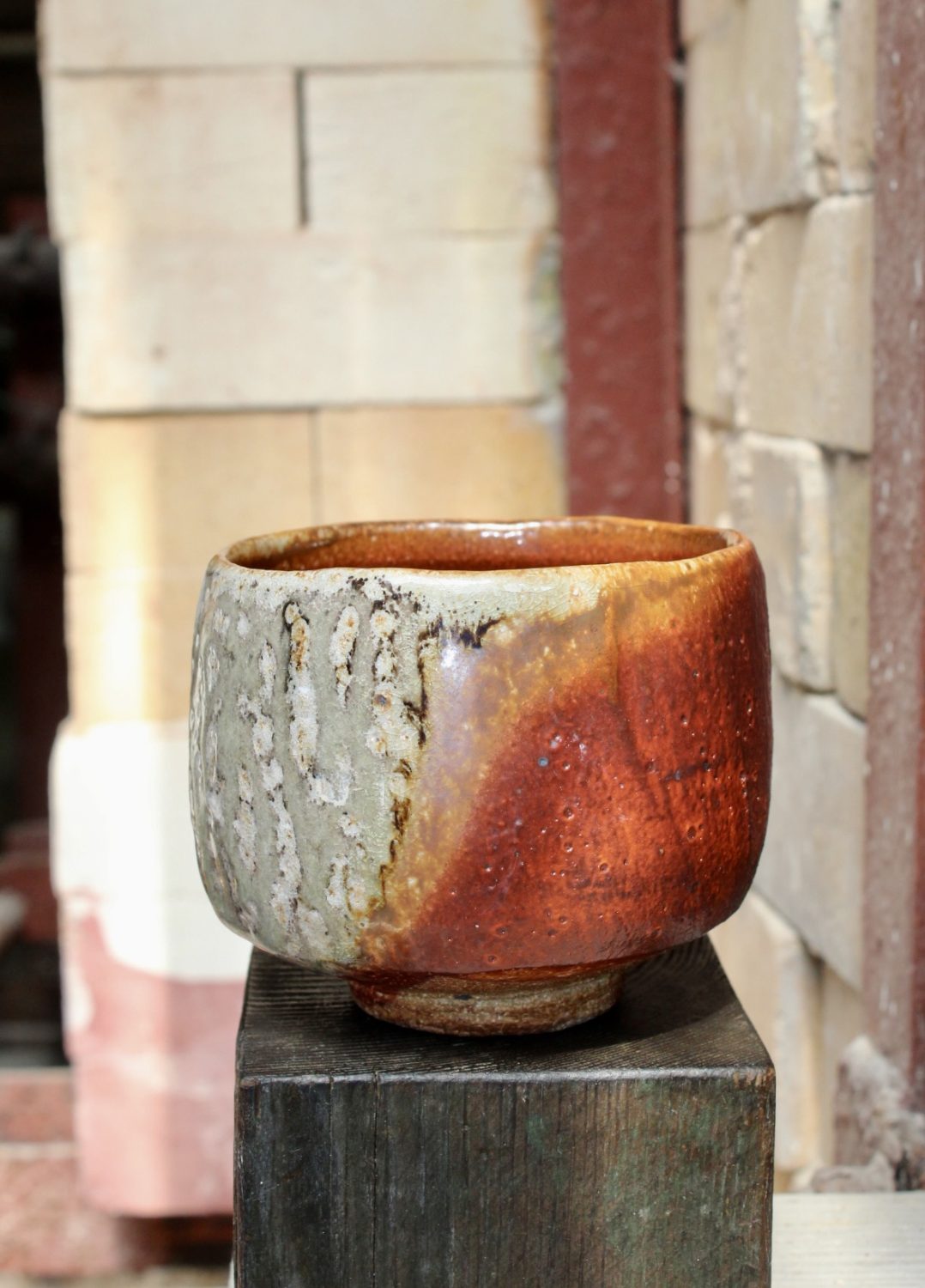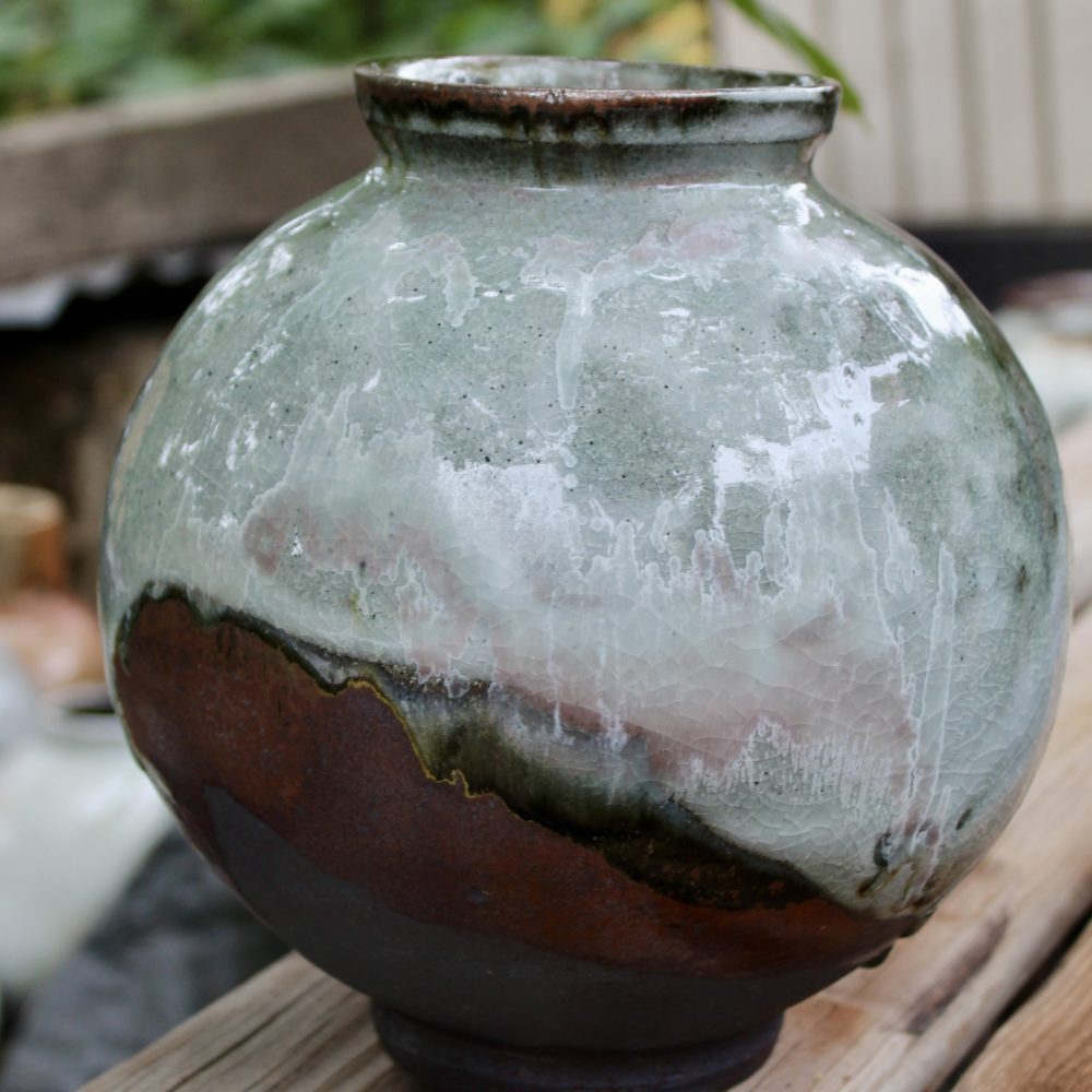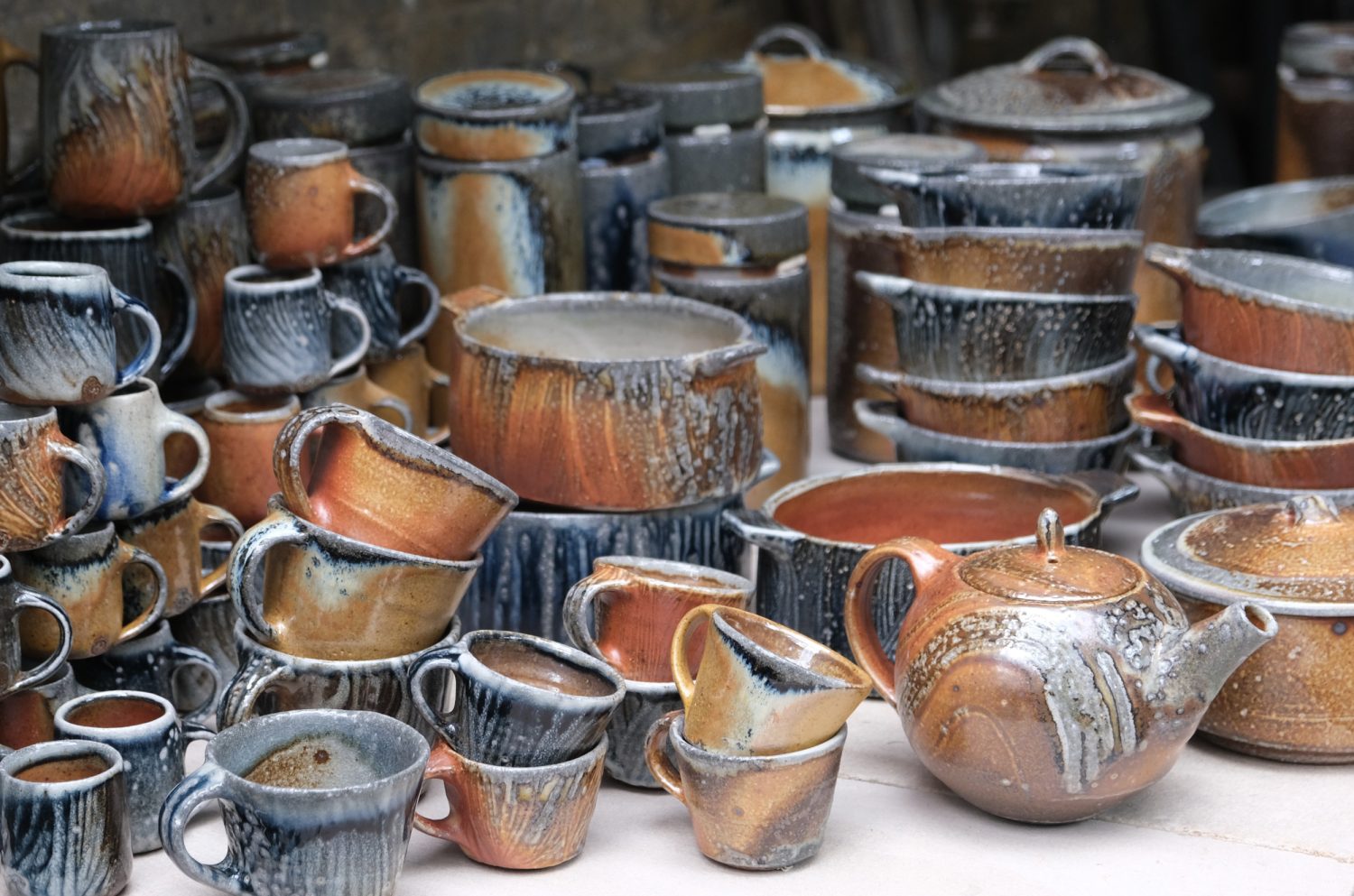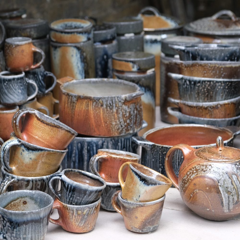 A Soda glaze, Shino potter and lecturer for over 45 years. Producing high temperature soda glaze functional ware. Raw glazing using slip and a pallete of firing schedules gives the work its rich colour and texture. In recent years Lisa has developed a range of work “Soda Shino” inspired by Mino pots of Japan. Lisa uses Shino glazes fired alongside the slipware pots in the soda kiln.