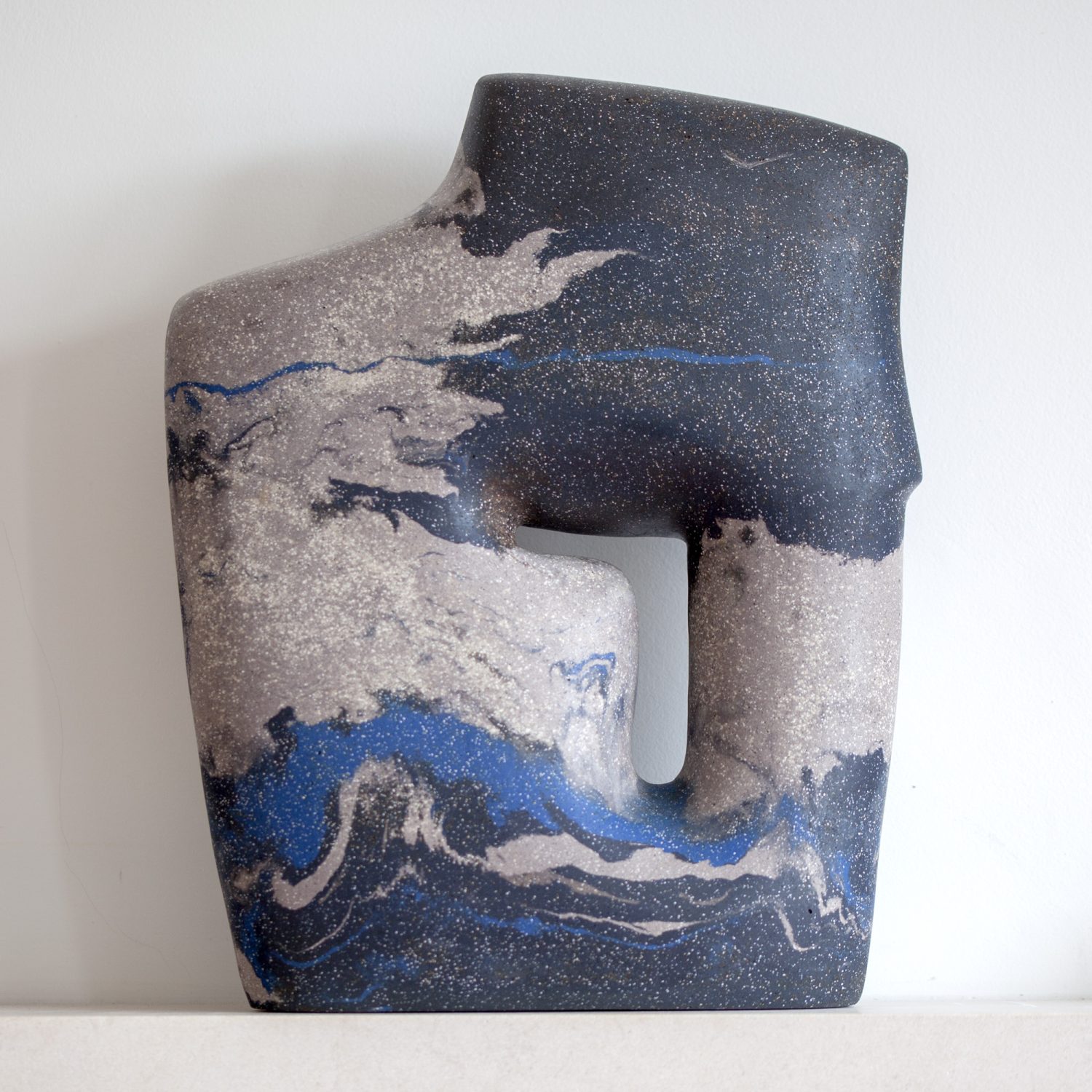 Exploration of the human subconscious drives Marek’s ceramic sculptures. Each piece is built to a unique design by coiling; a method with roots stretching to the dawn of humanity. In analogy to the way our environment fills our subconscious, Marek seeks a strong link between his work and its place of creation. Tone and contrast derive from locally found materials added to his stoneware clay mixes, in particular London clay. This forges a bond between each piece and its place of making within walking distance from an iron age pottery site that used this same clay.