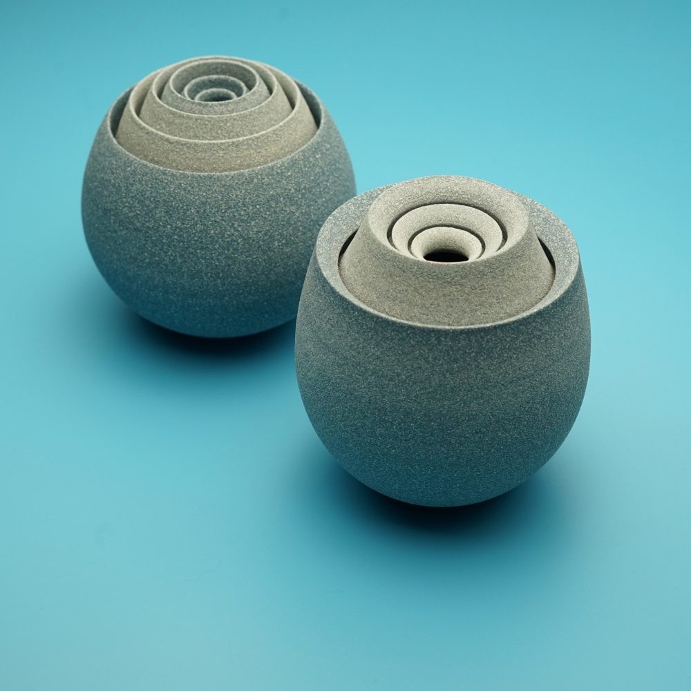 The Curio Vessels are an exploration in form. Small but intriguing, and inviting curiosity and investigation through their structural elements. All of which are separate thrown sections, interconnected to create a cohesive whole. They play with formal qualities including geometry, rhythm, balance, and mystery, and aim to offer beauty and strength in a compact scale.