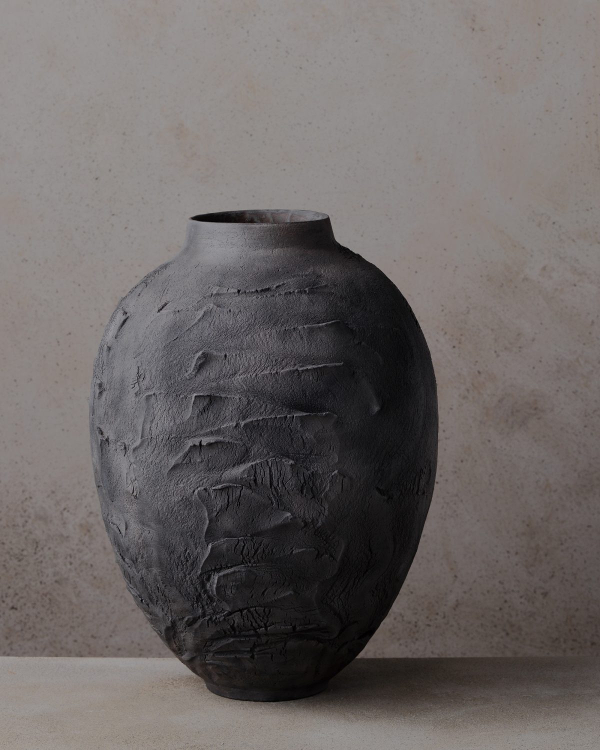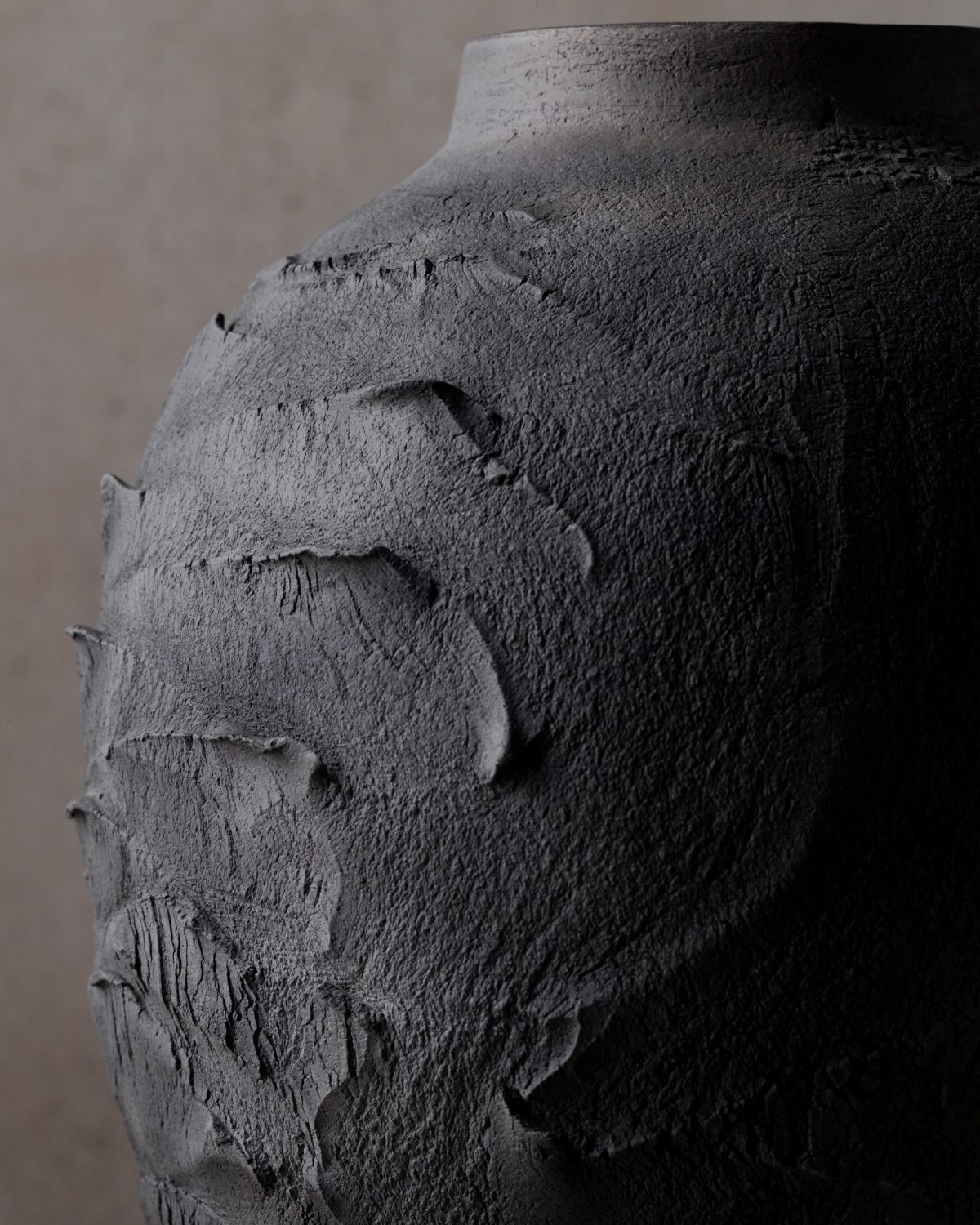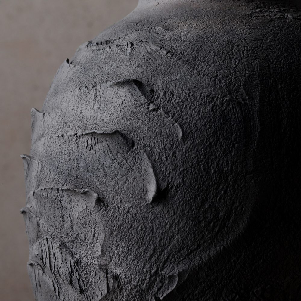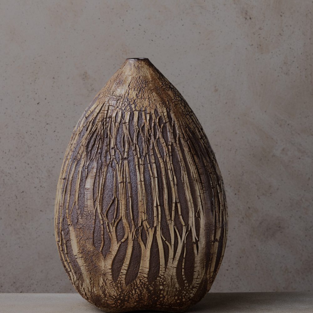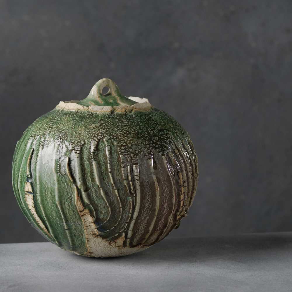 Patricia Shone’s work is hand formed by texturing and stretching from solid pieces of clay. Texture, and how a piece feels in the hand is primary; clay as a physical connection with the world, a visceral process trying to reveal the inexpressible. The mineral nature of the material reflects the formation and weathering of land and the passage of humans across the surface. She aims for tension and balance between the container and its contents. Grounded by the controlled forms of functional vessels but liberated from those constraints by broken, textured surfaces.
