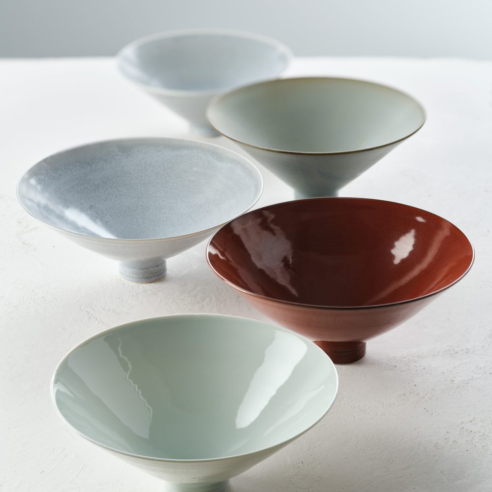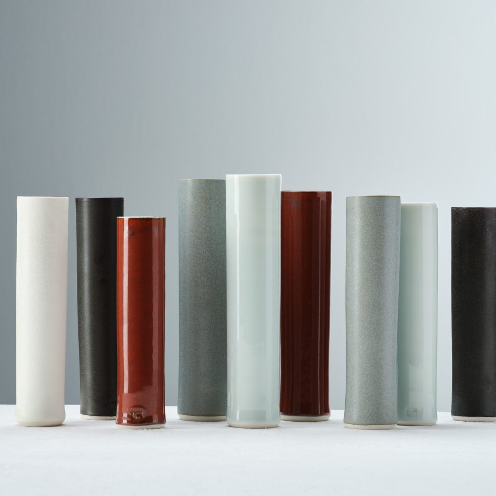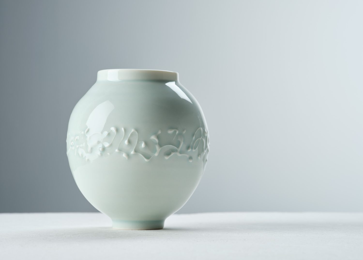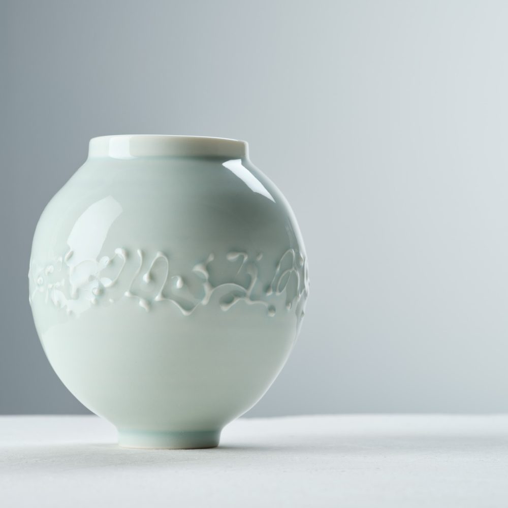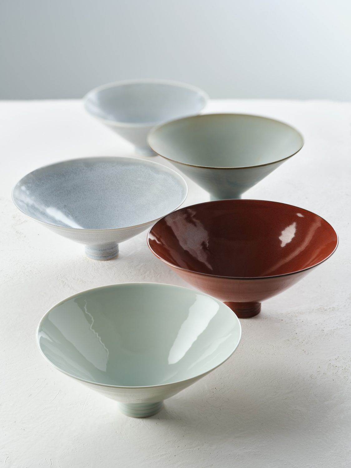 Robyn Hardyman creates finely thrown vessels in porcelain, for both decoration and use. She is inspired by porcelain’s combination of delicacy and strength, to create pieces whose pared-back forms evoke a sense of balance and harmony. Surface decoration is minimal – an incised line around a narrow foot, or a slip decoration to add a dynamic to the stillness of a moon jar. Robyn relishes the pure surface that porcelain offers for a glaze, and her work uses a palette of serene glaze colours and textures, a variety of surfaces to complement the restrained forms.