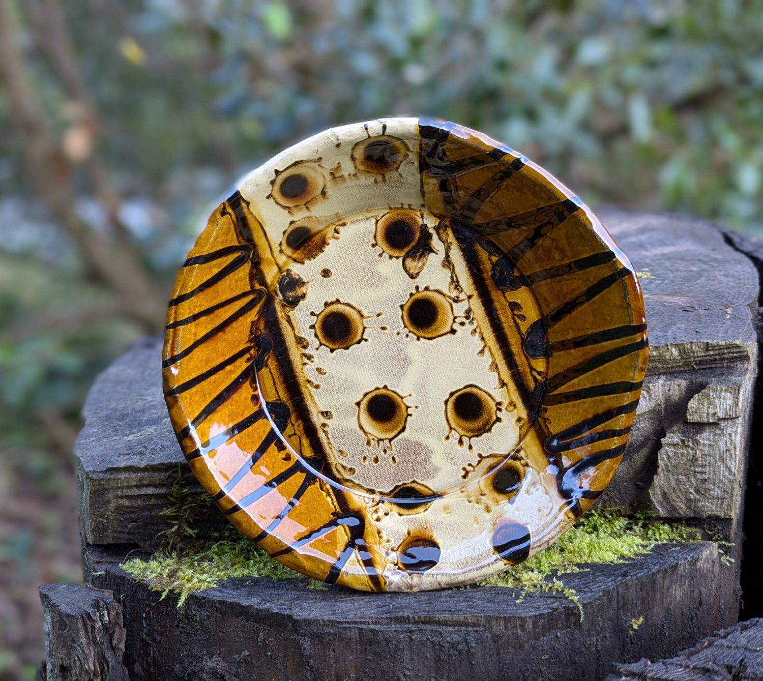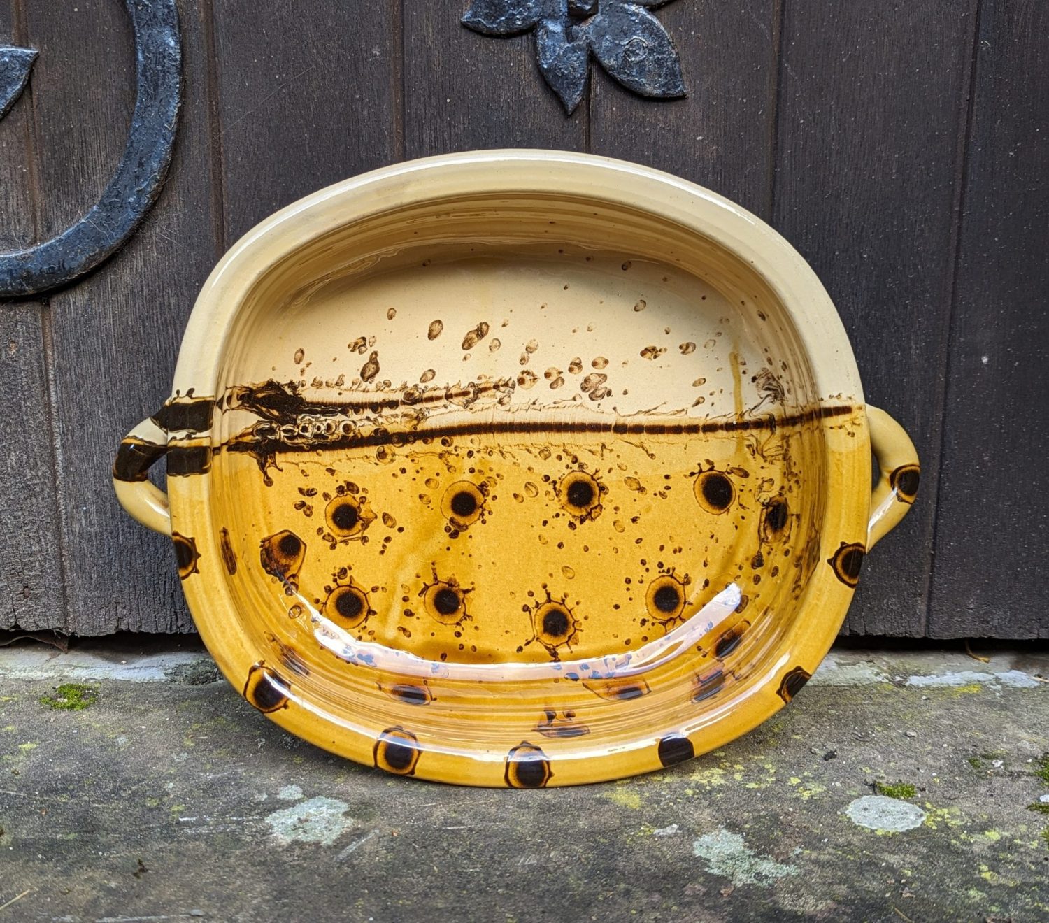 Russell’s work is deeply rooted in the North Devon slipware and country pottery traditions, and he makes contemporary slipware that has a good anchor in tradition. The goal is to be moving forwards while always looking backwards. Russell’s pots are for the kitchen, oven and table.