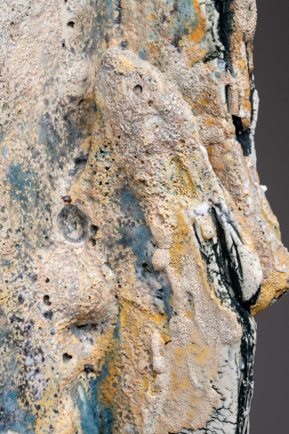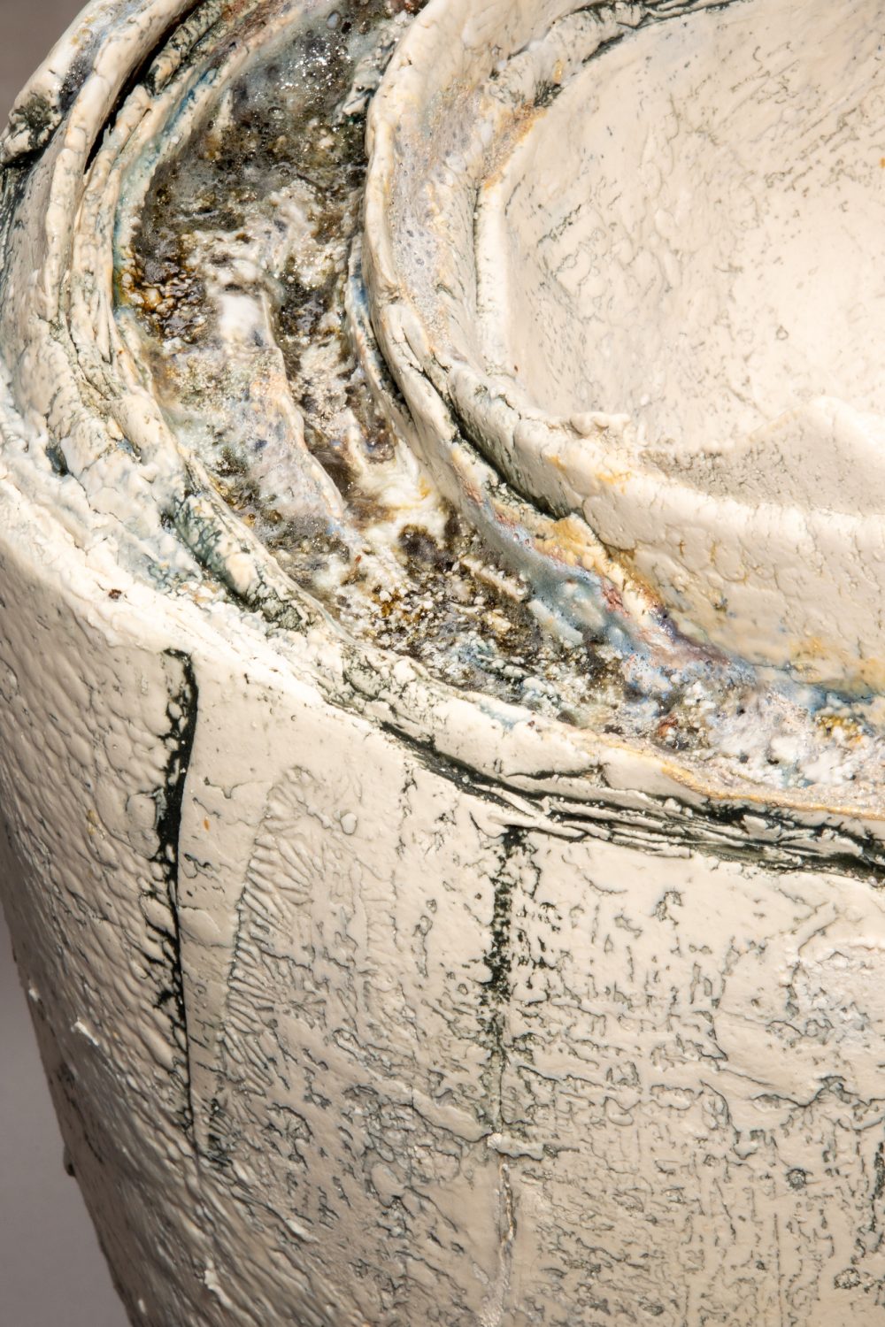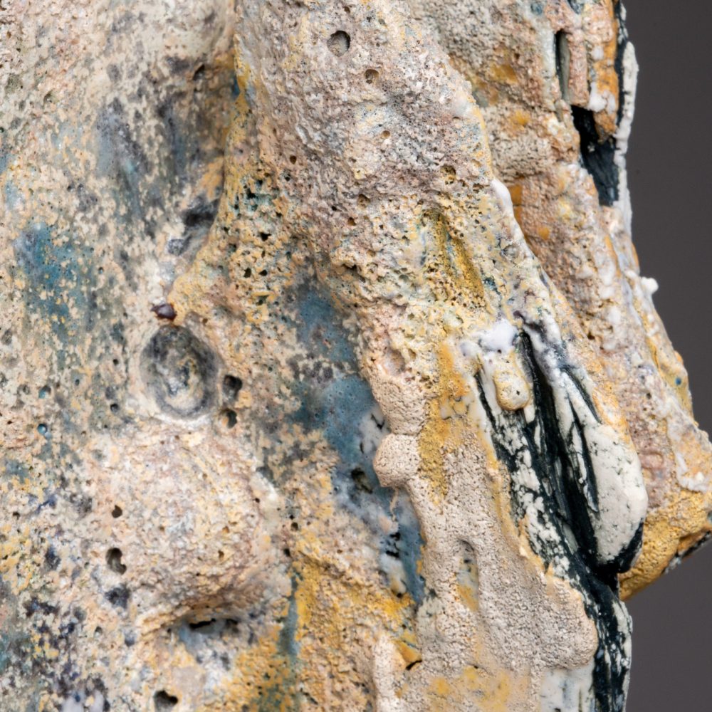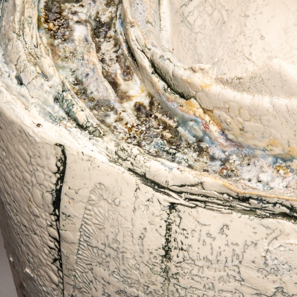 Sarah’s working practise is driven by our coastal environment, inter-tidal spaces, an area part land/part sea, ever changing with the tides ebb & flow. Splitting time between coastal visits gathering source material & studio work playing with clay, work is influenced by historical land defences, sea salt corrosion, wild weather dereliction. Large clay sculptures exploring the visual aesthetics of the coast, as well as emotional responses; nature’s power; to sounds, waves, textures, fragility of nature, & coastal erosion.