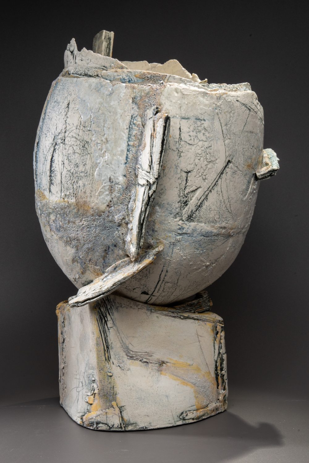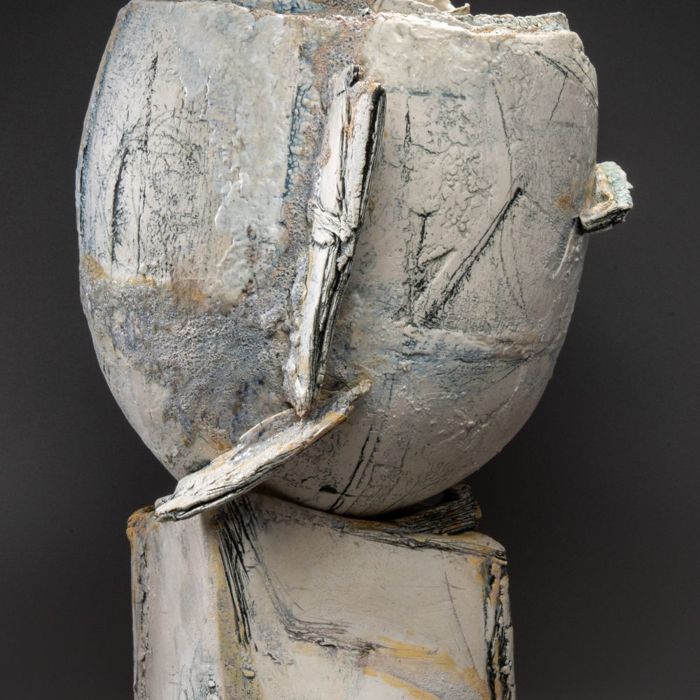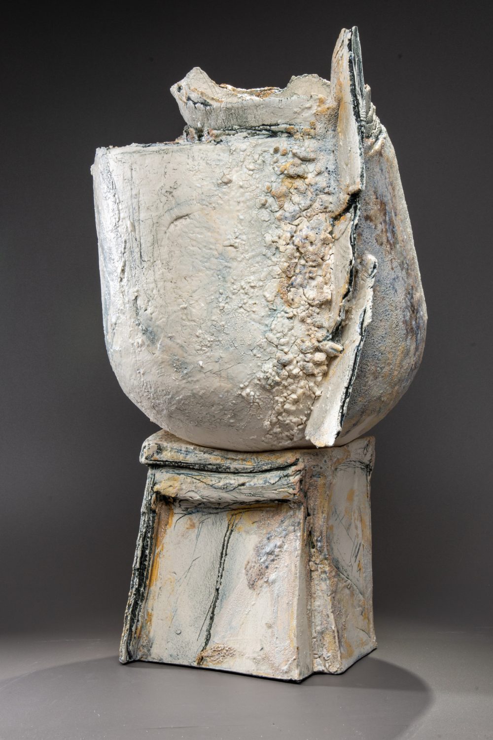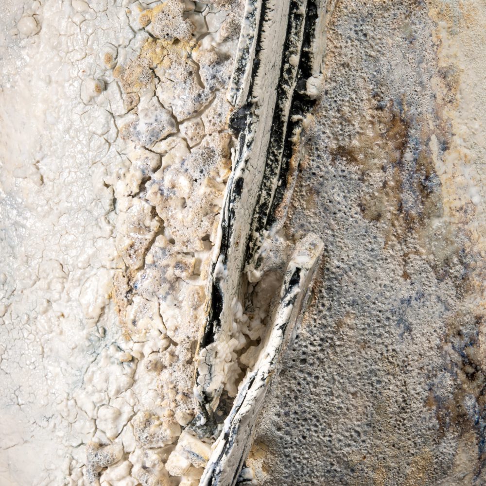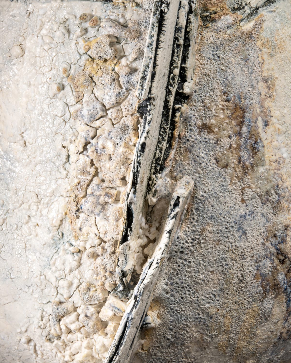 Sarah’s working practise is driven by our coastal environment, inter-tidal spaces, an area part land/part sea, ever changing with the tides ebb & flow. Splitting time between coastal visits gathering source material & studio work playing with clay, work is influenced by historical land defences, sea salt corrosion, wild weather dereliction. Large clay sculptures exploring the visual aesthetics of the coast, as well as emotional responses; nature’s power; to sounds, waves, textures, fragility of nature, & coastal erosion.
