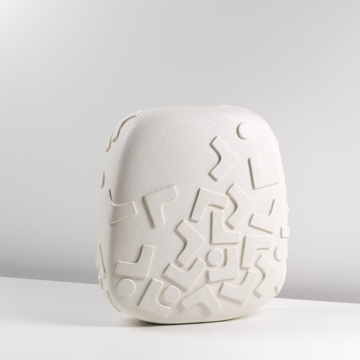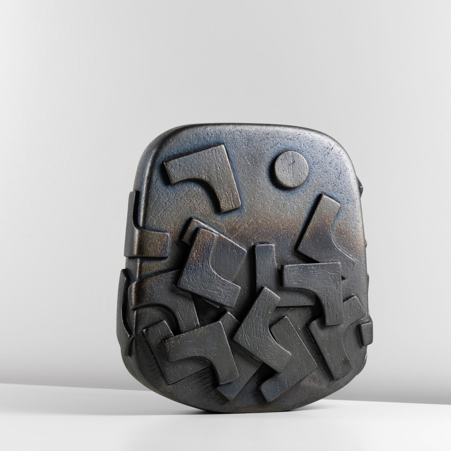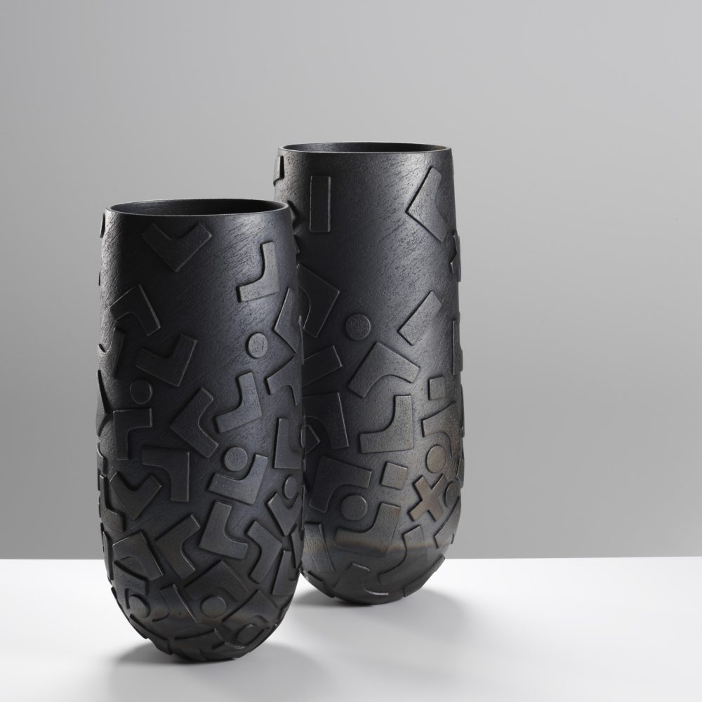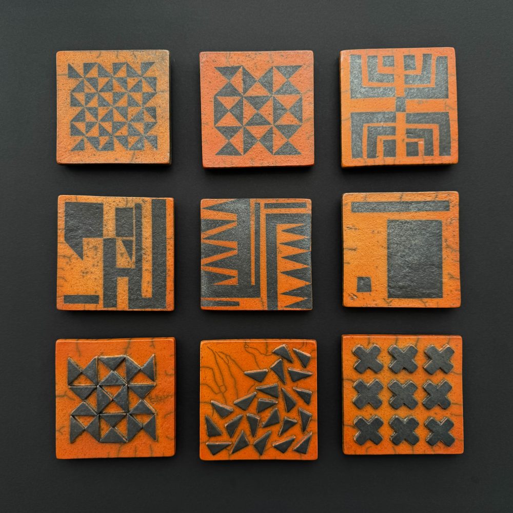 Sue Hanna creates handbuilt ceramic vessels, sculptures, and wall pieces, ranging from intimate handheld objects to larger-scale works. Inspired since childhood by tribal art, her practice reflects this enduring influence. Her surfaces are decorated with rich textures and rhythmic patterns inspired by textiles she has encountered and collected during her travels. She often uses slips made from wild clays gathered in Pembrokeshire, adding a strong sense of place to her work.