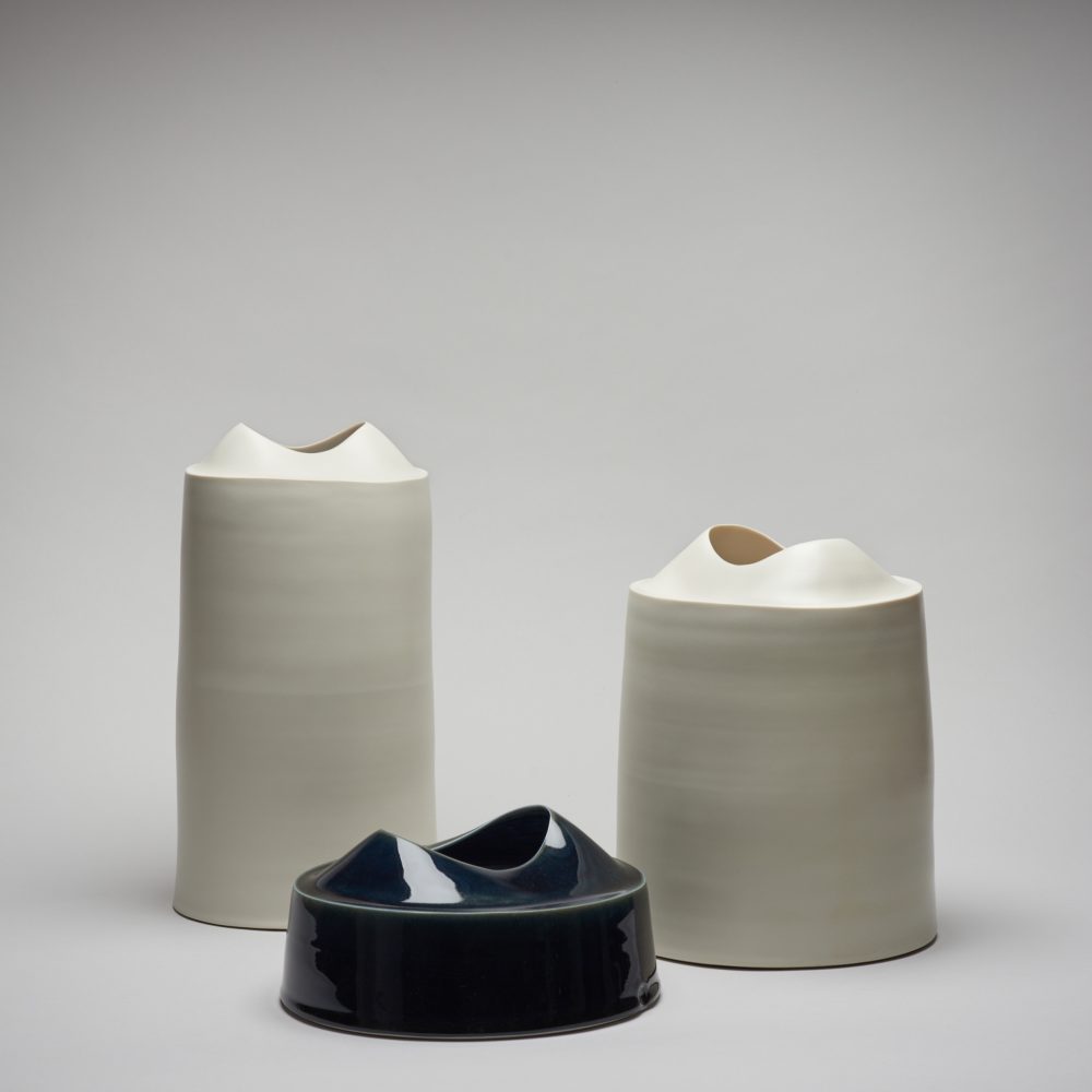 Tanya Gomez works primarily with porcelain and black clay, employing a range of throwing techniques to create forms that convey fluidity, movement, and a sense of space. She crafts each piece with a keen awareness of natural phenomena and dramatic landscapes, drawing inspiration from the colours, shapes, and ever-changing qualities of the sea. Having always lived by the coast and with a studio on the south coast, these influences continually inspire her work.