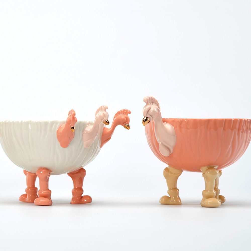 Yunji is a ceramic designer-maker who dreams of a playful world. By using the slip-casting technique, Yunji has pushed the productive boundaries of the traditional “single mould, single design” approach, and is now creating variations in form by using modular moulds, much like block play. Yunji explores the humor found in reimagining socially constructed spaces and purposes with a playful blend of kitsch and kidult sensibility. She believes design is “Giving value to living spaces and creating a new relationship between objects and humans.” She hopes her work reminds people of the pure, childlike joy that lies within us all.